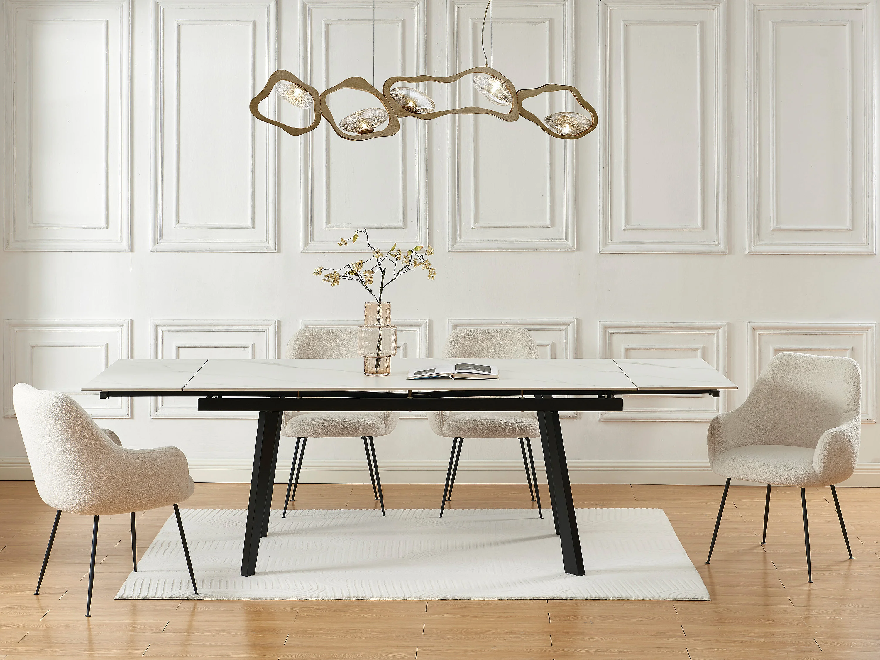 Table à manger extensible 6 à 10 personnes en céramique et métal - Effet marbre blanc et noir - MARVENA