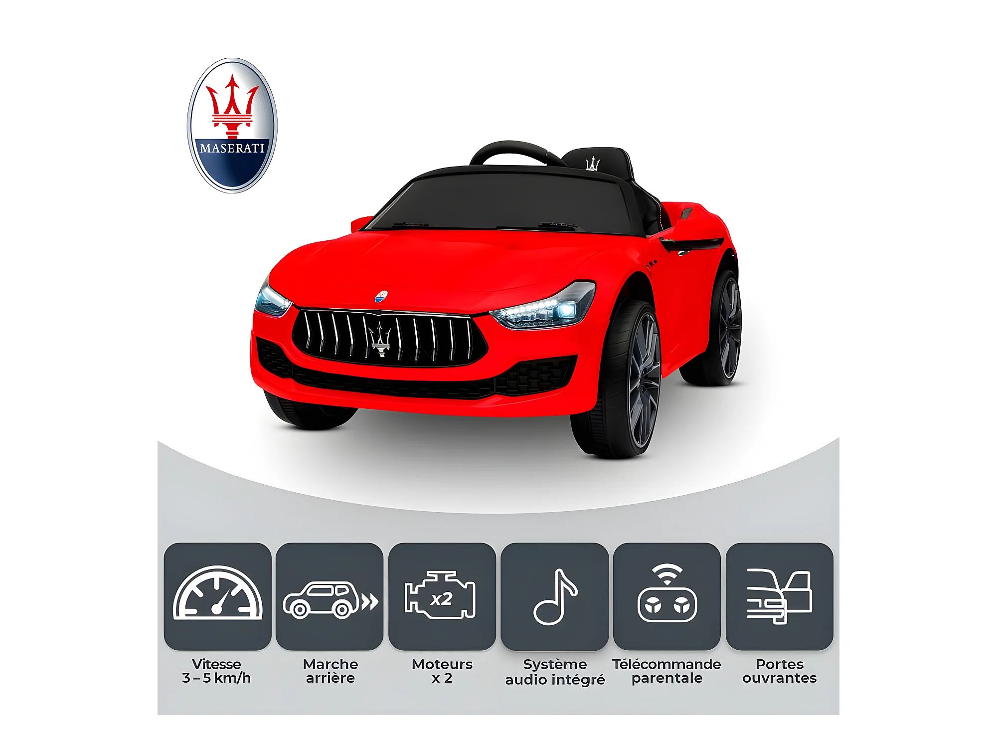 Maserati Ghibli Voiture Electrique Enfant (2 x 25W) 108 x 56 x 44 cm - Marche av/ar, Phares, Musique et Télécommande parentale