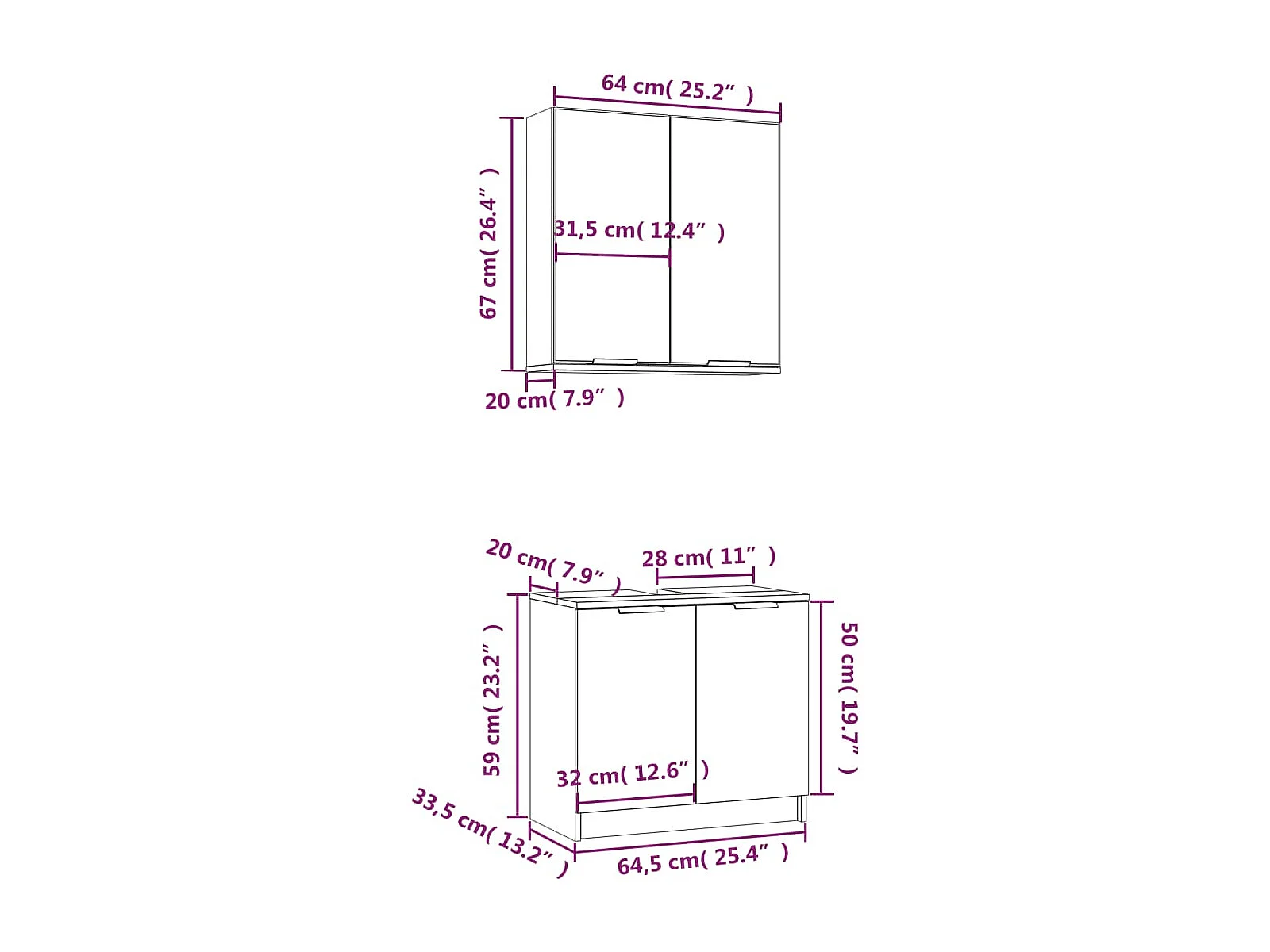 Masum Meubles de salle de bain 2 pcs Gris béton Bois d'ingénierie