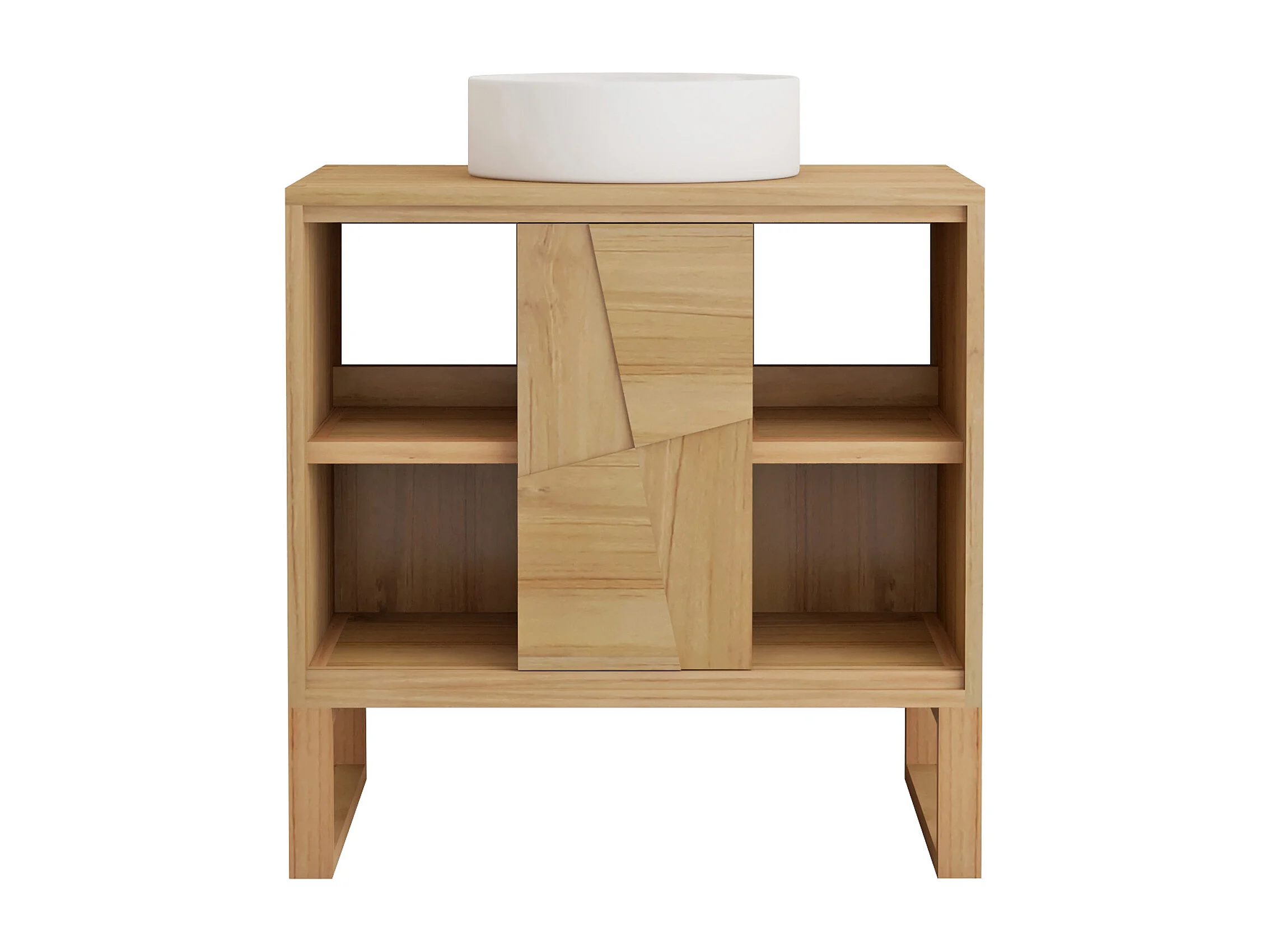 Meuble de salle de bain sur pieds en teck avec vasque à poser ronde en céramique - L80 cm - MATARAM