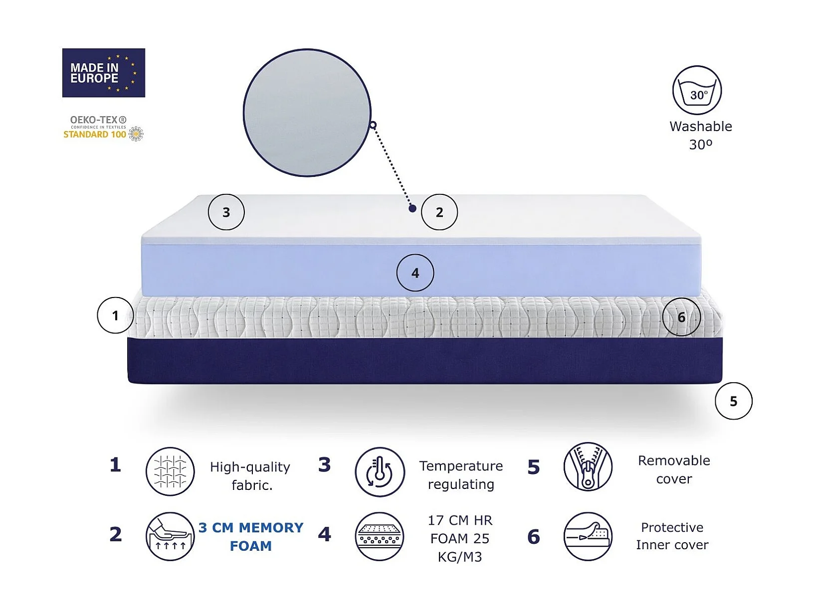 Matelas mousse 80X190 ODISEO FOAM Epaisseur 30 CM Mémoire de forme