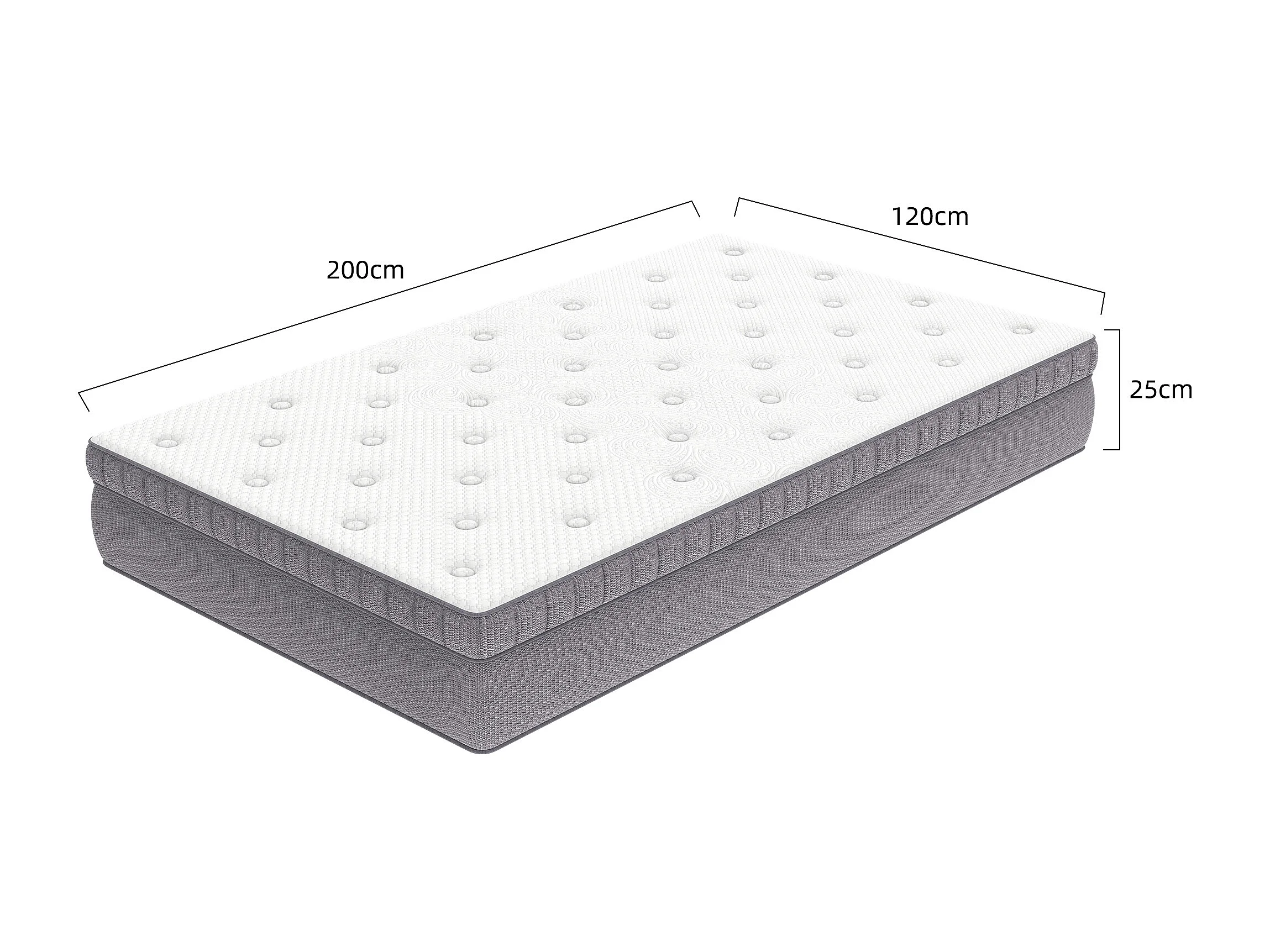 Matelas 120x200 cm H 25 cm avec ressorts ensachés 7 zones