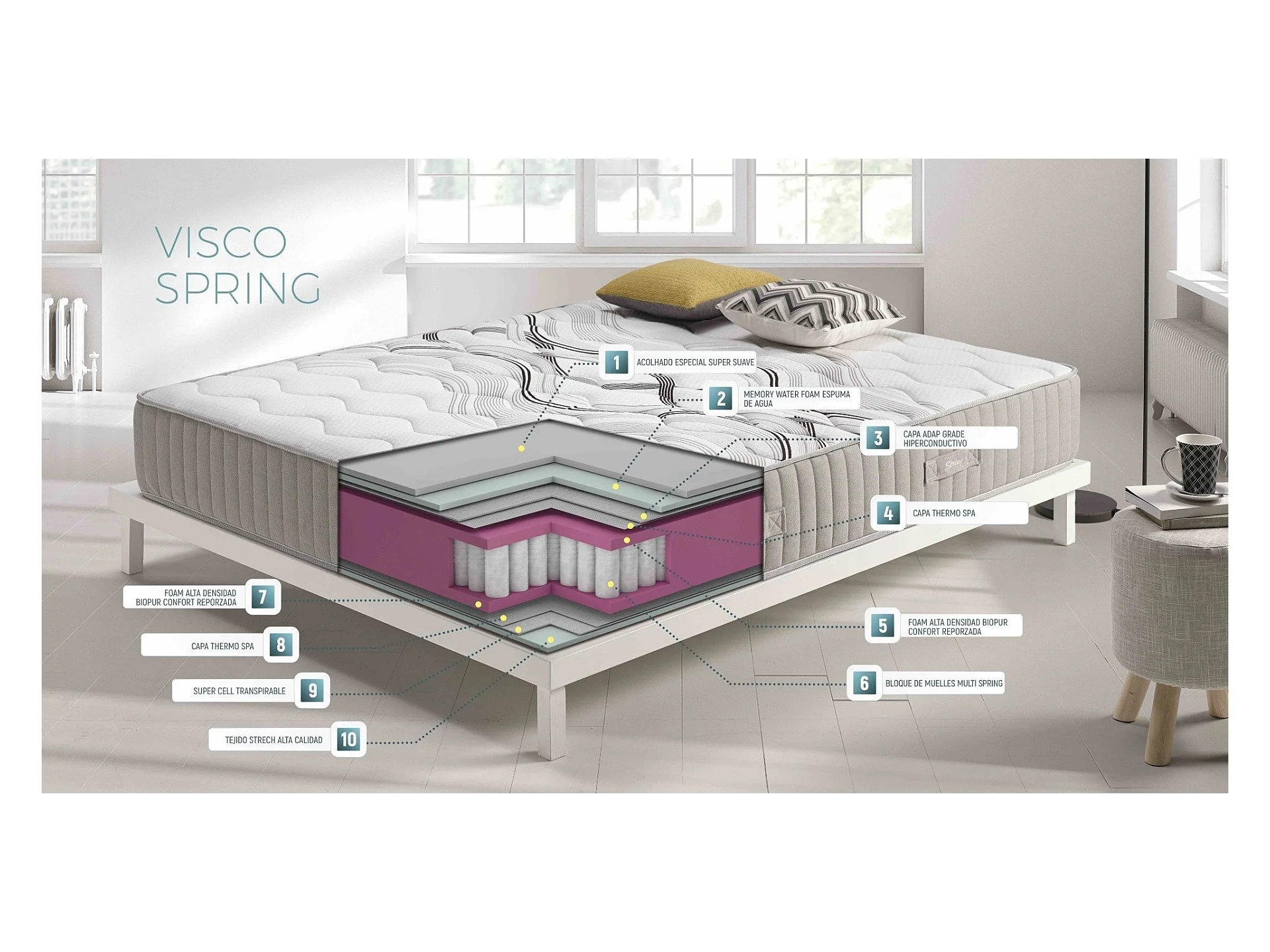 Matelas 135x190 visco spring | ressorts ensachés et mousse hr haute densité | epaisseur 26 cm | 11 zones de confort - système multicouche