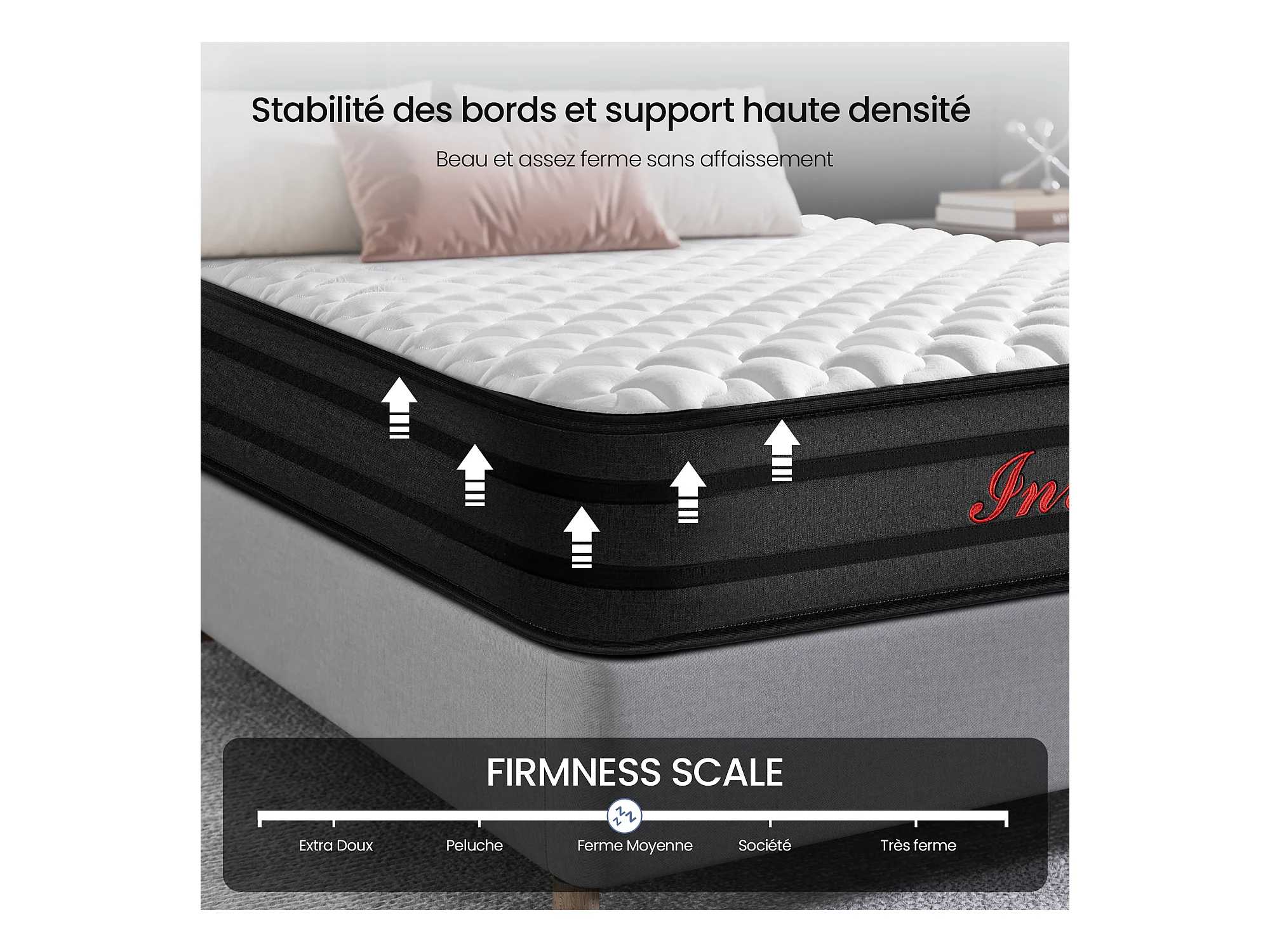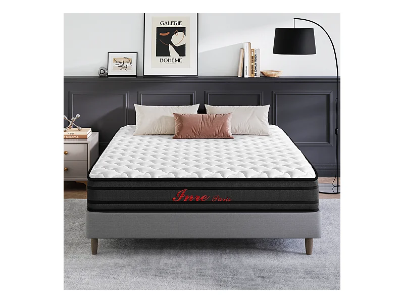 Matelas 140x190 cm INRE, Épais 30 cm, Hybride, Ressorts Ensachés, Mémoire de Forme, 7 Zones, Moyenne Ferme, Confort et Qualité Exceptionnels