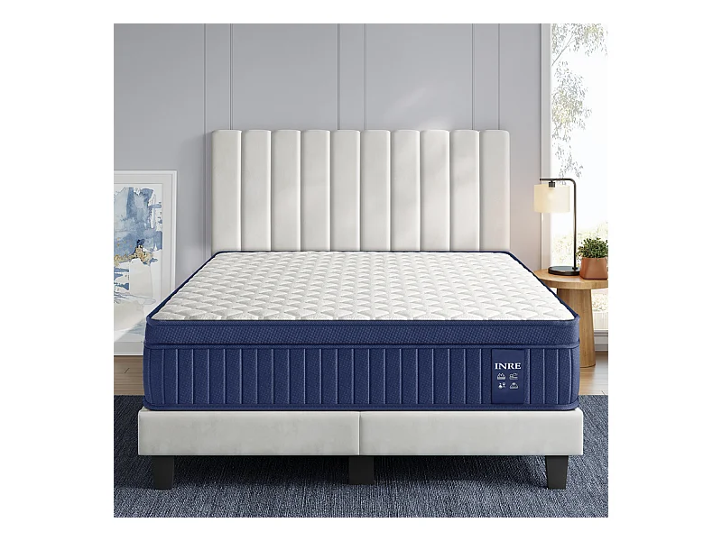 Matelas 140x190 cm INRE, Épais 30cm, Matelas Hybride, Ressorts Ensachés Mémoire de Forme, 7 Zones, Ferme