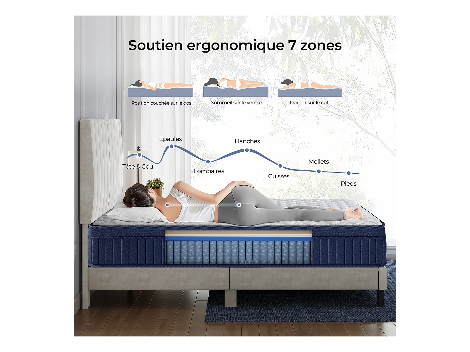 Matelas 140x190 cm Epaisseur 25 cm, Premium Matelas à ressorts, Certifié OEKO-TEX®, Hypoallergénique, Mi-ferme, 7 zones de confort