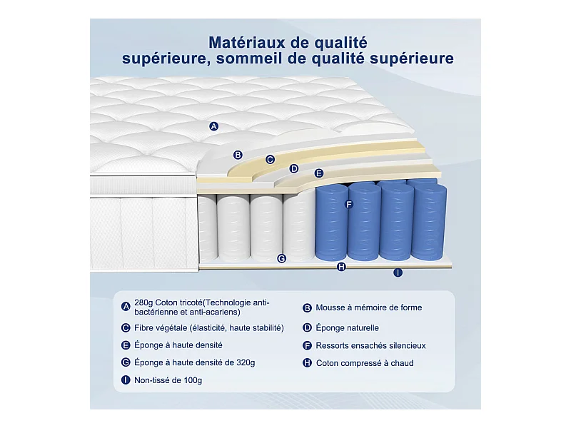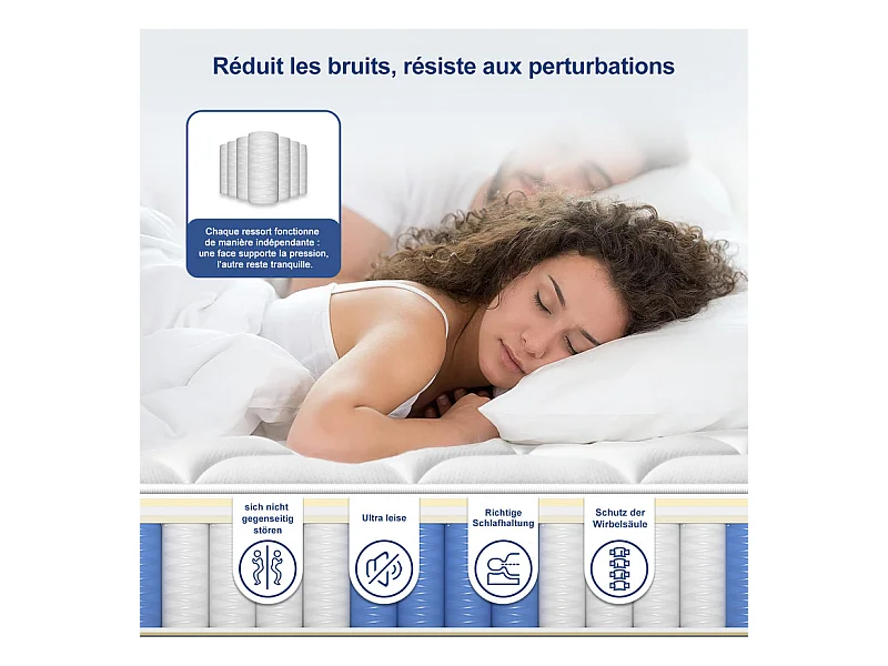 Matelas 140x200 cm à ressorts ensachés avec mémoire de forme,multiples tailles– Épaisseur 25 cm