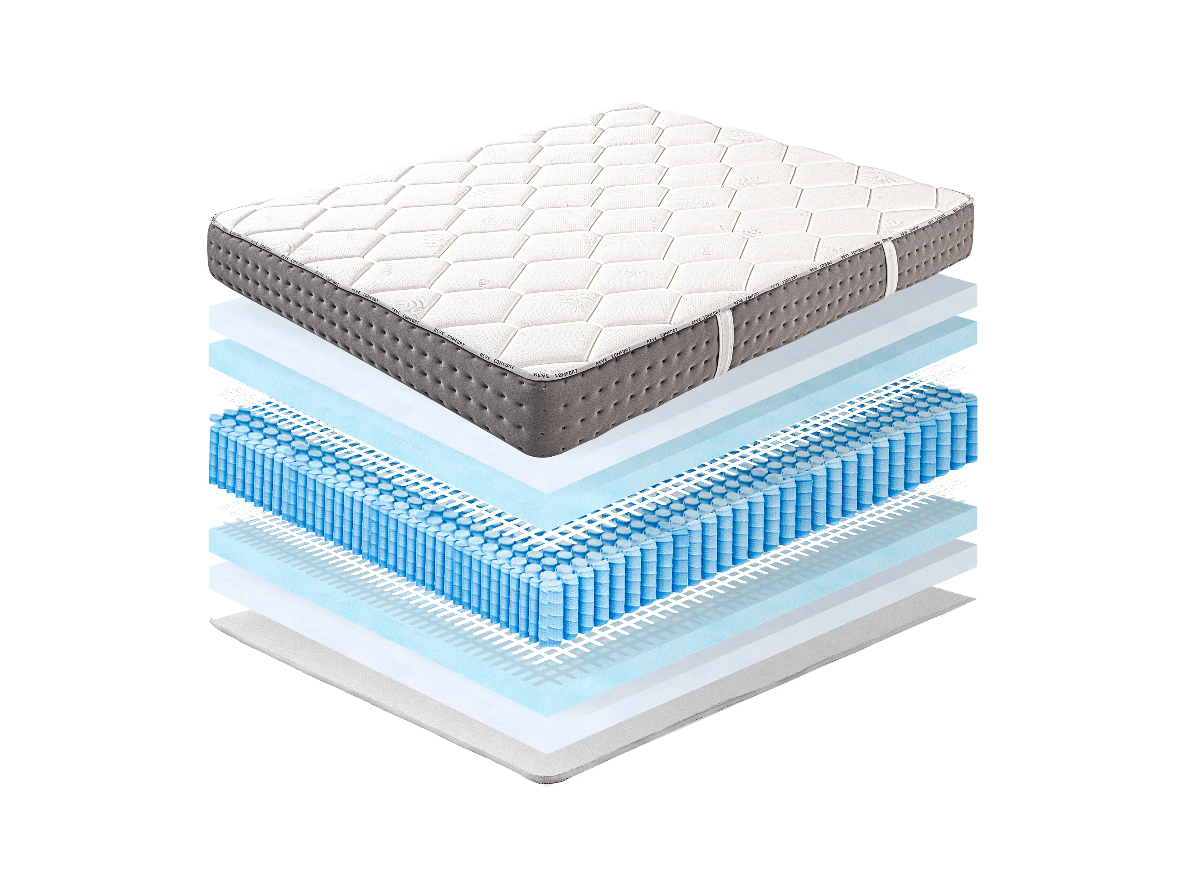 Matelas 140x200 cm, Sakina, 24cm, Ressorts Ensachés, Mousse Haute Densité, Soutien ferme