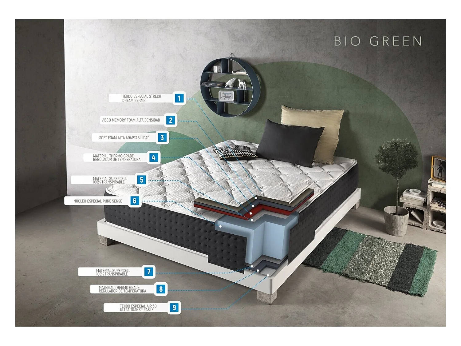 Matelas 160x200 bio green | mousse á memoire de forme bio pur® | épaisseur 30 cm | hypoallergénique | anatomique - certifié oeko-tex®