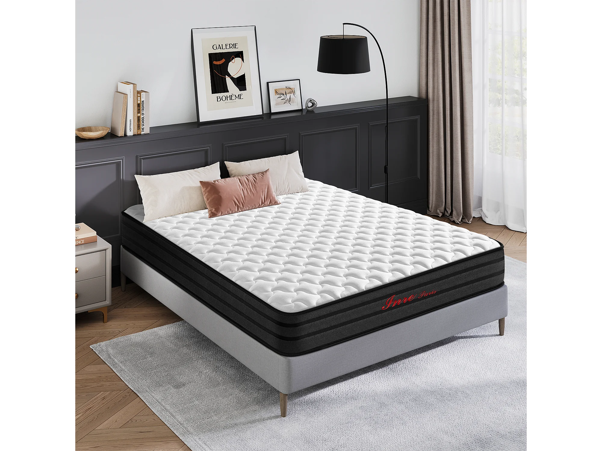 Matelas 160x200 cm Epaisseur 25 cm, Premium Matelas à ressorts, Certifié OEKO-TEX®, Hypoallergénique, Mi-ferme, 7 zones de confort