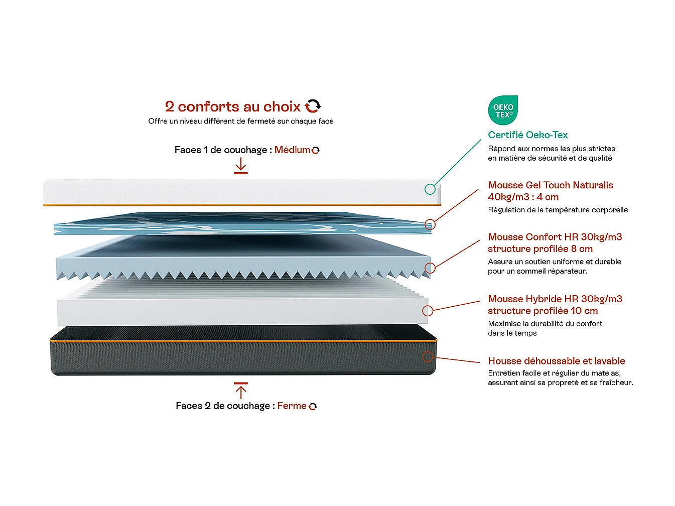 Matelas 160x200 cm mousse gel à mémoire de forme, double confort - 22 cm - Dual Confort