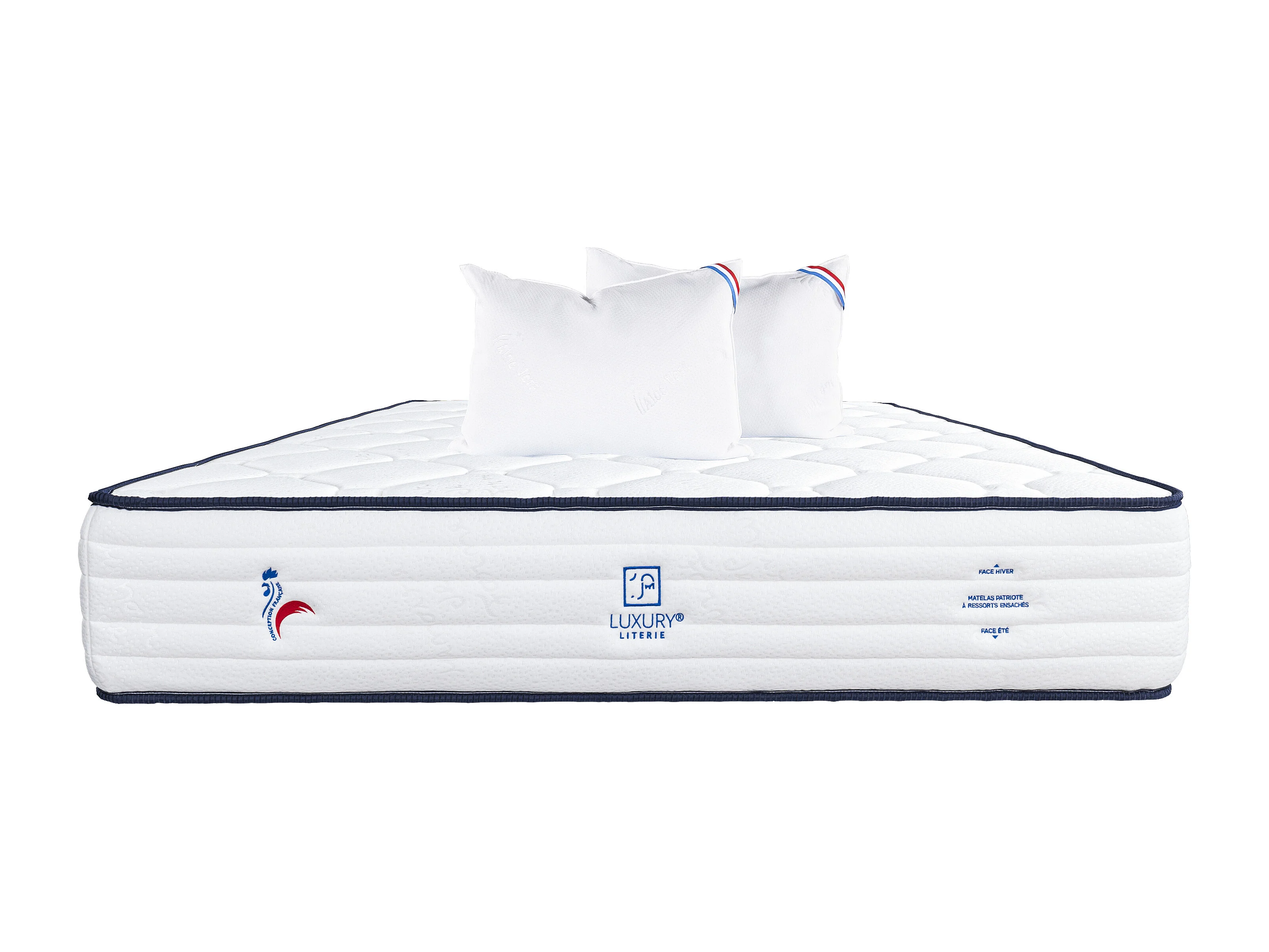 Matelas 160x200 cm, Patriote, 27cm, Ressorts Ensachés, Soutien ferme + 2 Oreillers