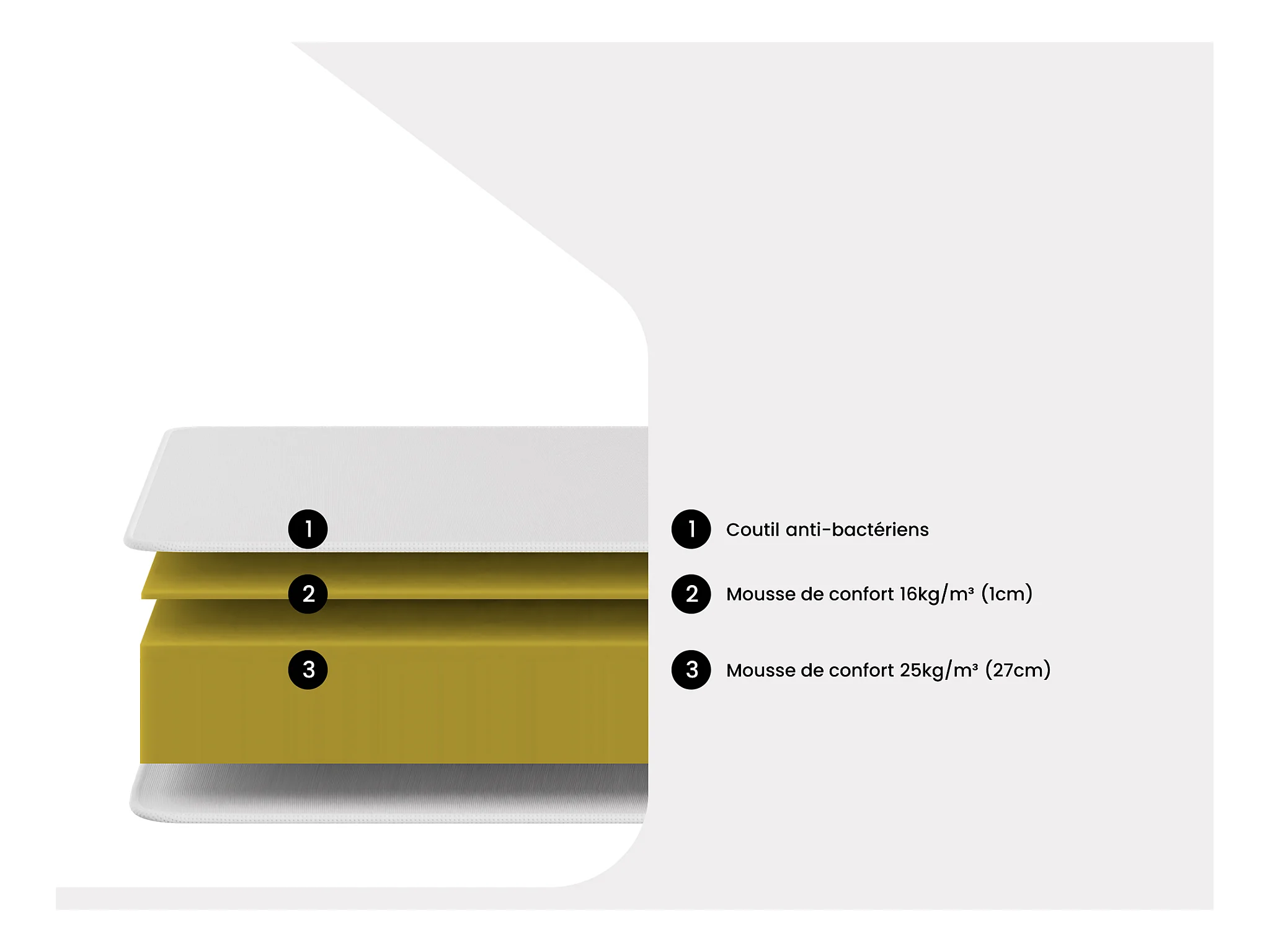 Matelas 180 x 200 cm mousse ép.30cm - SOLAK de YSMÉE