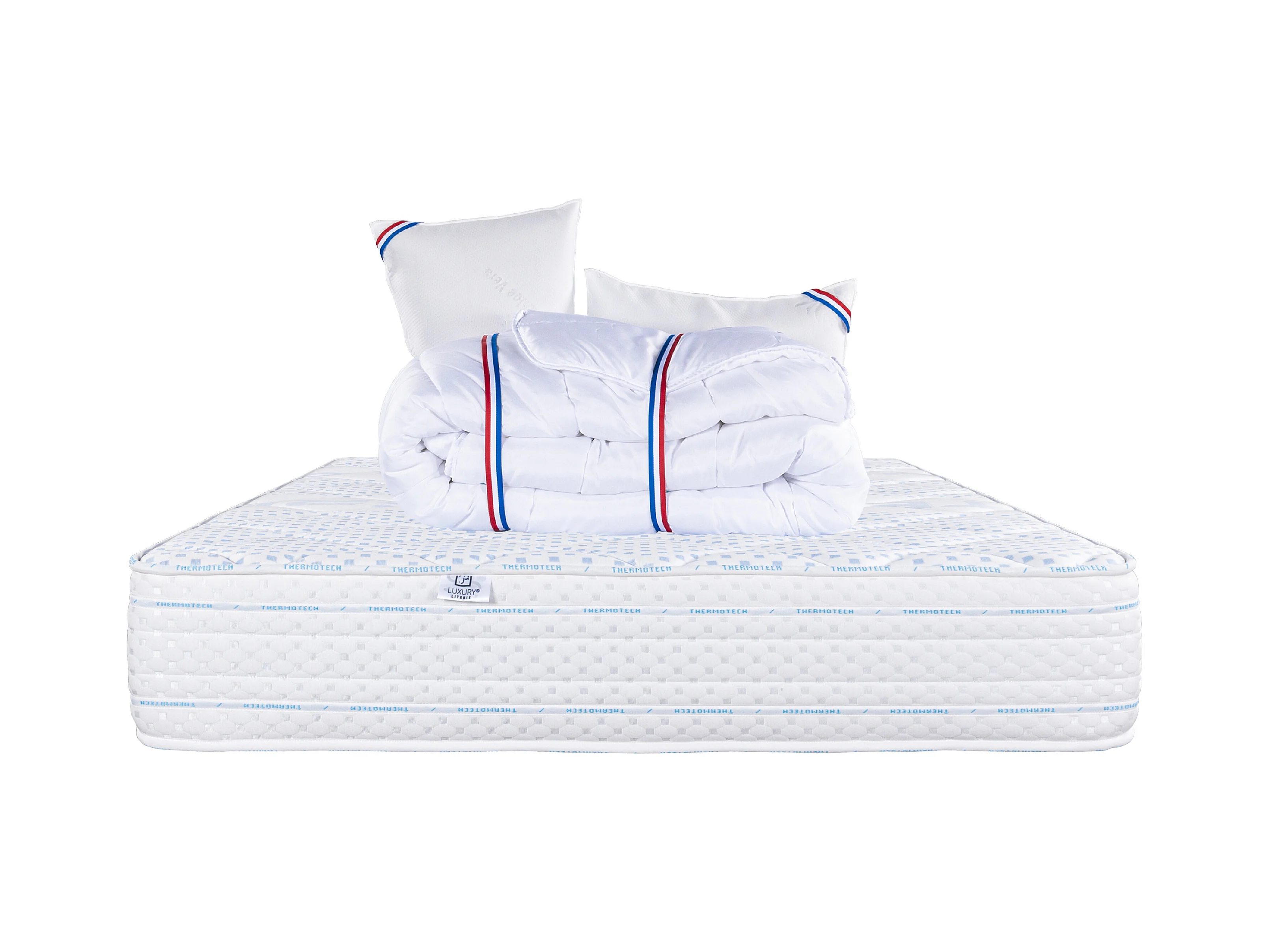 Matelas 180x200 cm, Thermotec, 24 cm, mémoire de forme, ferme + 2 oreillers + couette