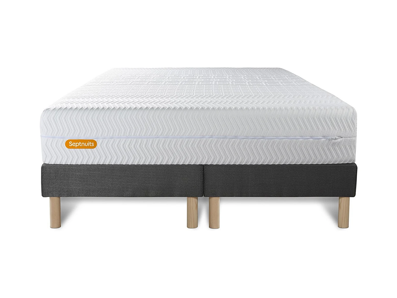 Matelas 180x200 + double sommiers gris 90x200 Memo Bio Mousse à mémoire de forme 5 zones de confort Maxi épaisseur Déhoussable