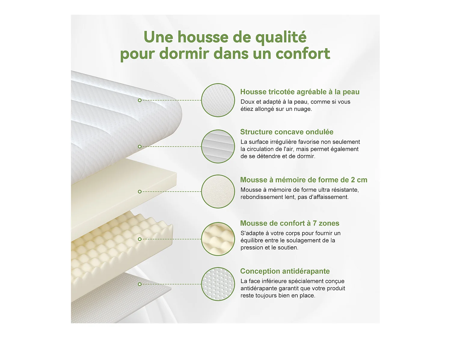 Matelas 90 x 190 cm et mémoire de forme ép.7cm