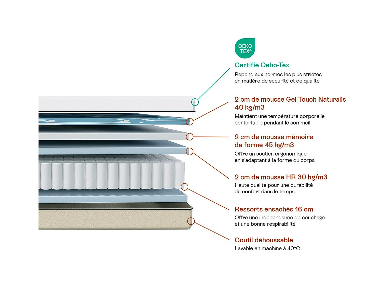 Matelas 90x190 cm Hybride à ressorts ensachés et mémoire de forme - 25 cm - Spring Elite