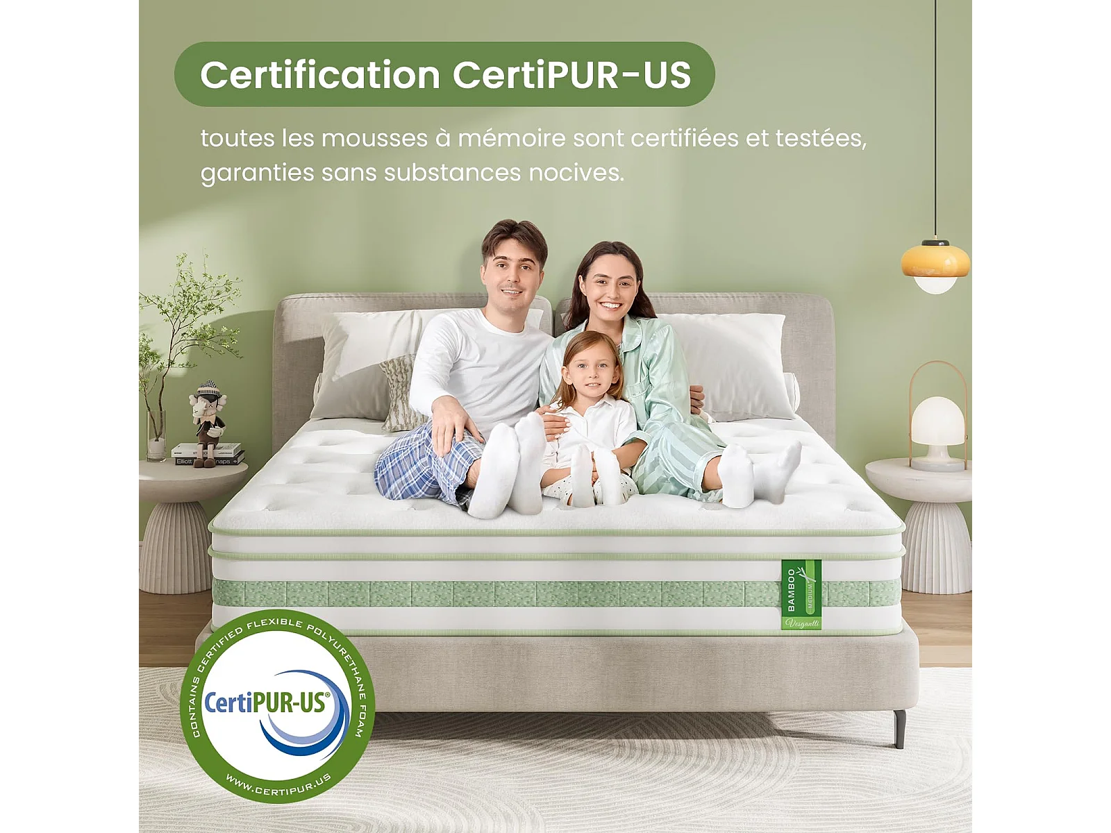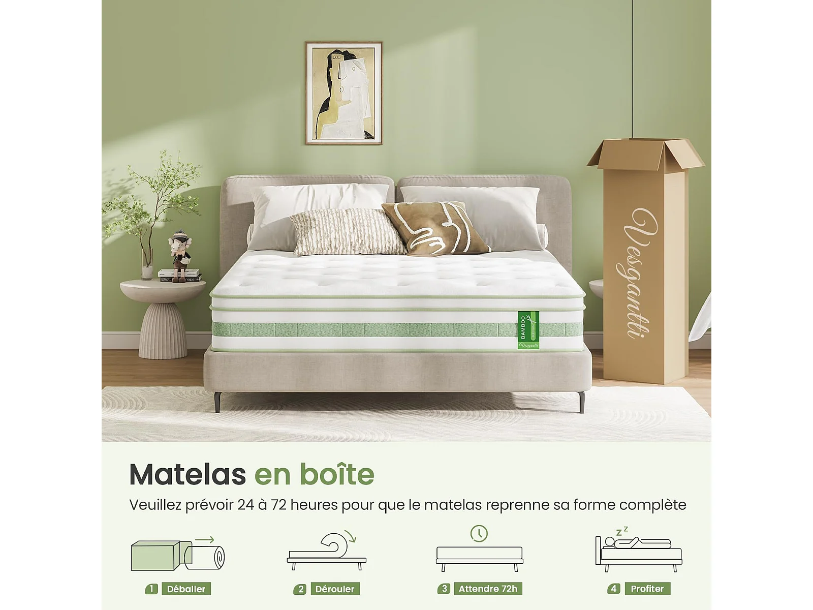 Matelas 90x200 cm hybride 25 cm gel memoire et ressorts ensaches 7 zones orthopedique isolation mouvements fermete moyenne