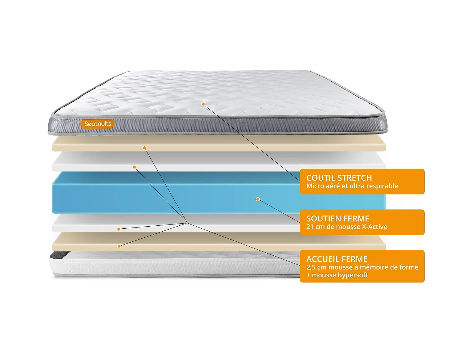Matelas 90x200 Memo Zen Mousse à mémoire de forme 5 zones de confort MAXI épaisseur