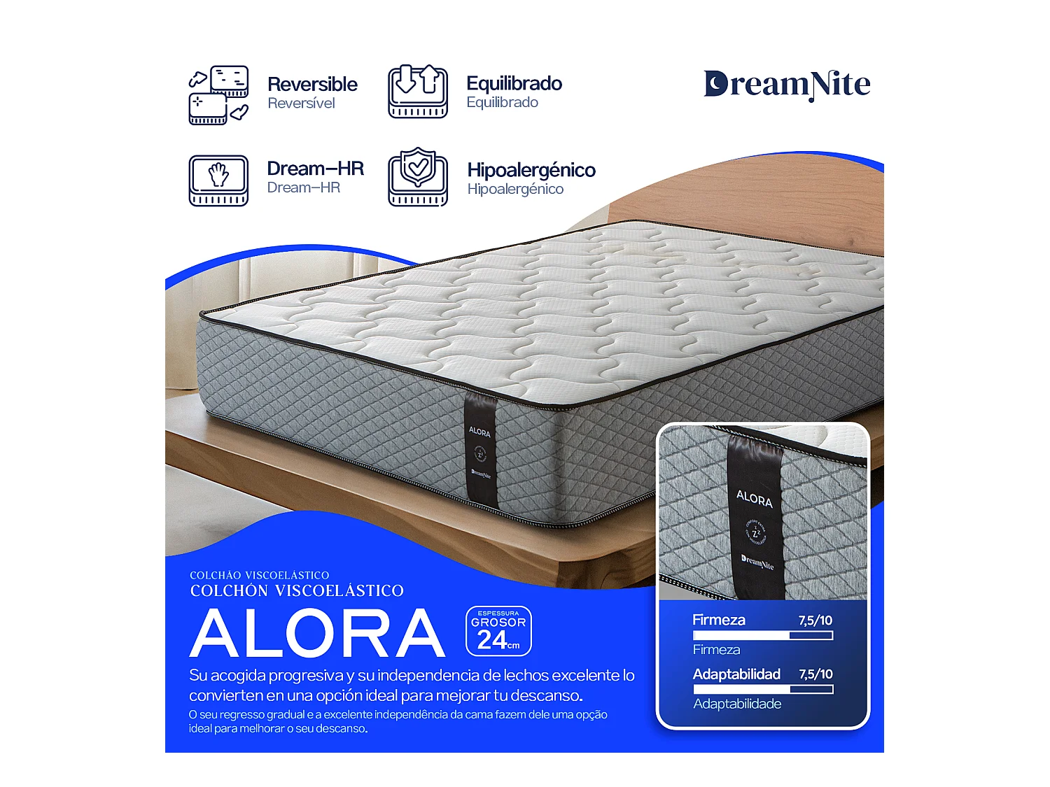 Matelas à mémoire de forme 80x200 cm Alora 24 - Épaisseur +- 24 cm - Double Face - Ferme-Mi-Ferme - Système multicouche - Certifié Oeko Tex