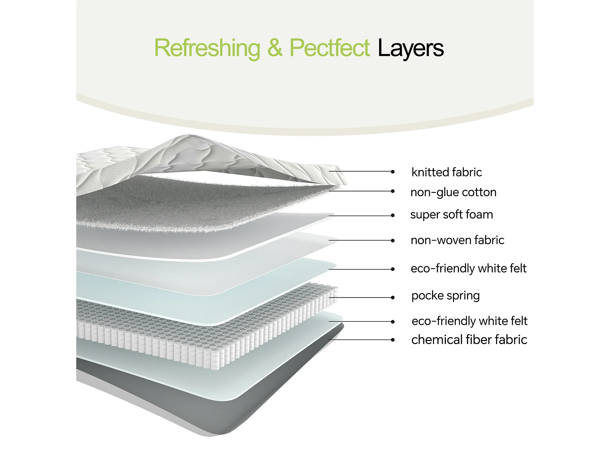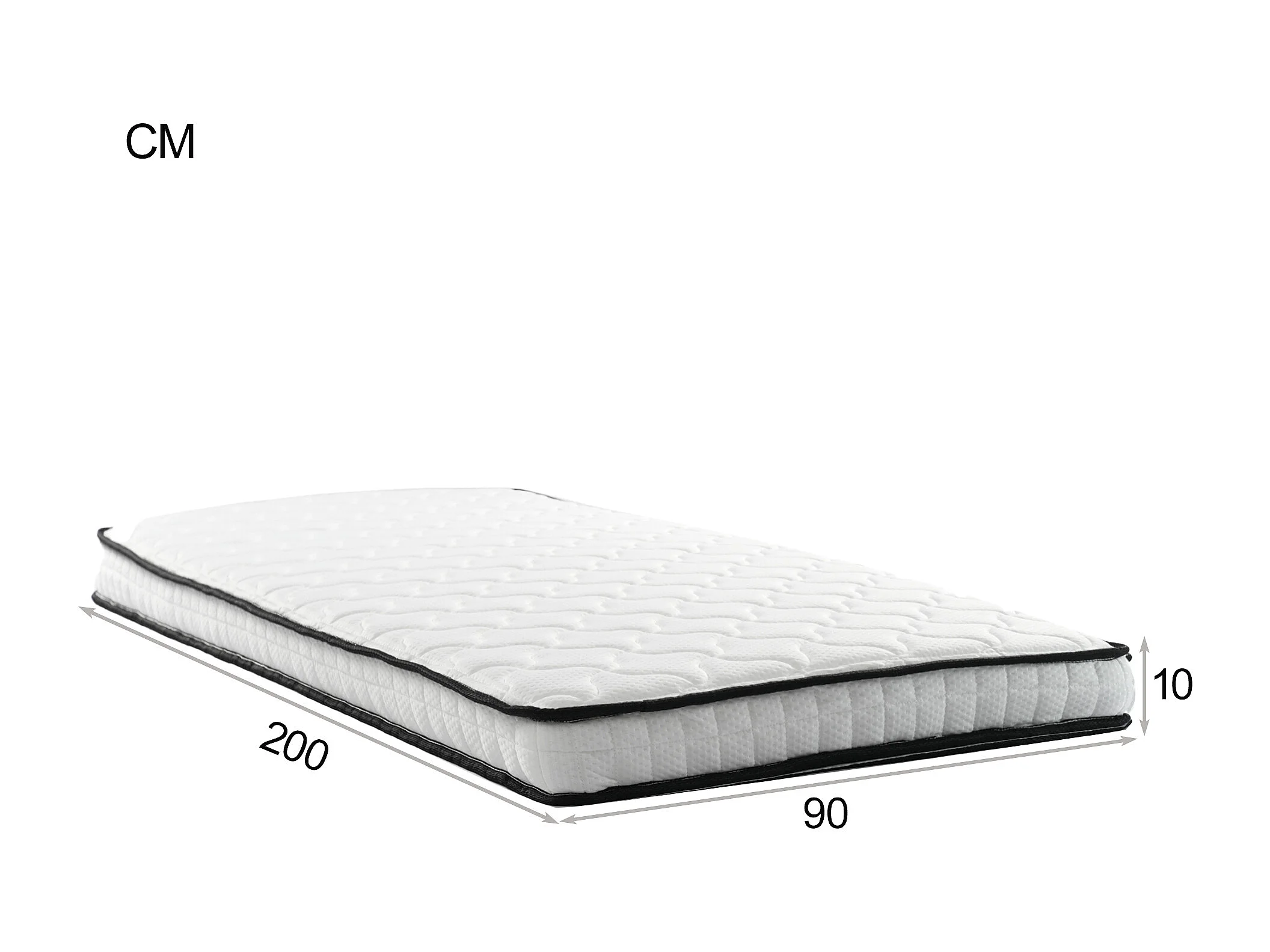 Matelas à ressorts - 90 x 200 cm - avec modules ergonomiques et soutien lombaire - 10 cm d'épaisseur - Tissu + Métal - blanc