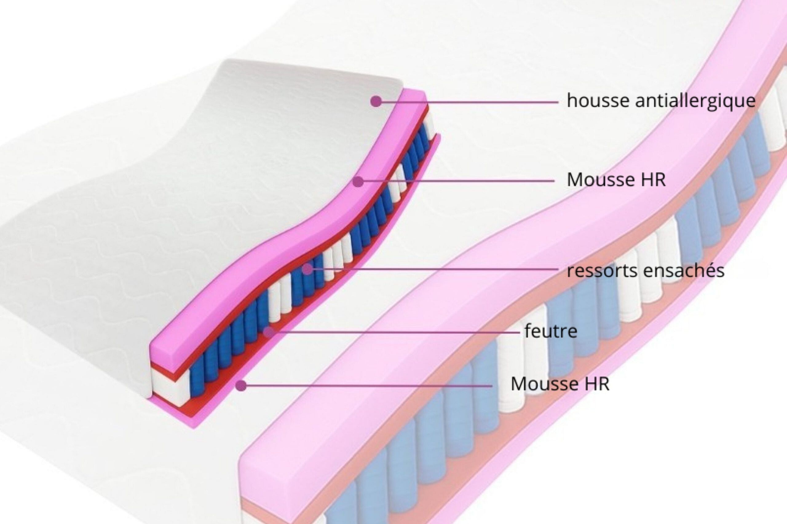 Matelas à ressorts ensachés Muvieso, 7 zones, 200 x 200 cm, hauteur 25 cm, H3, aloe vera