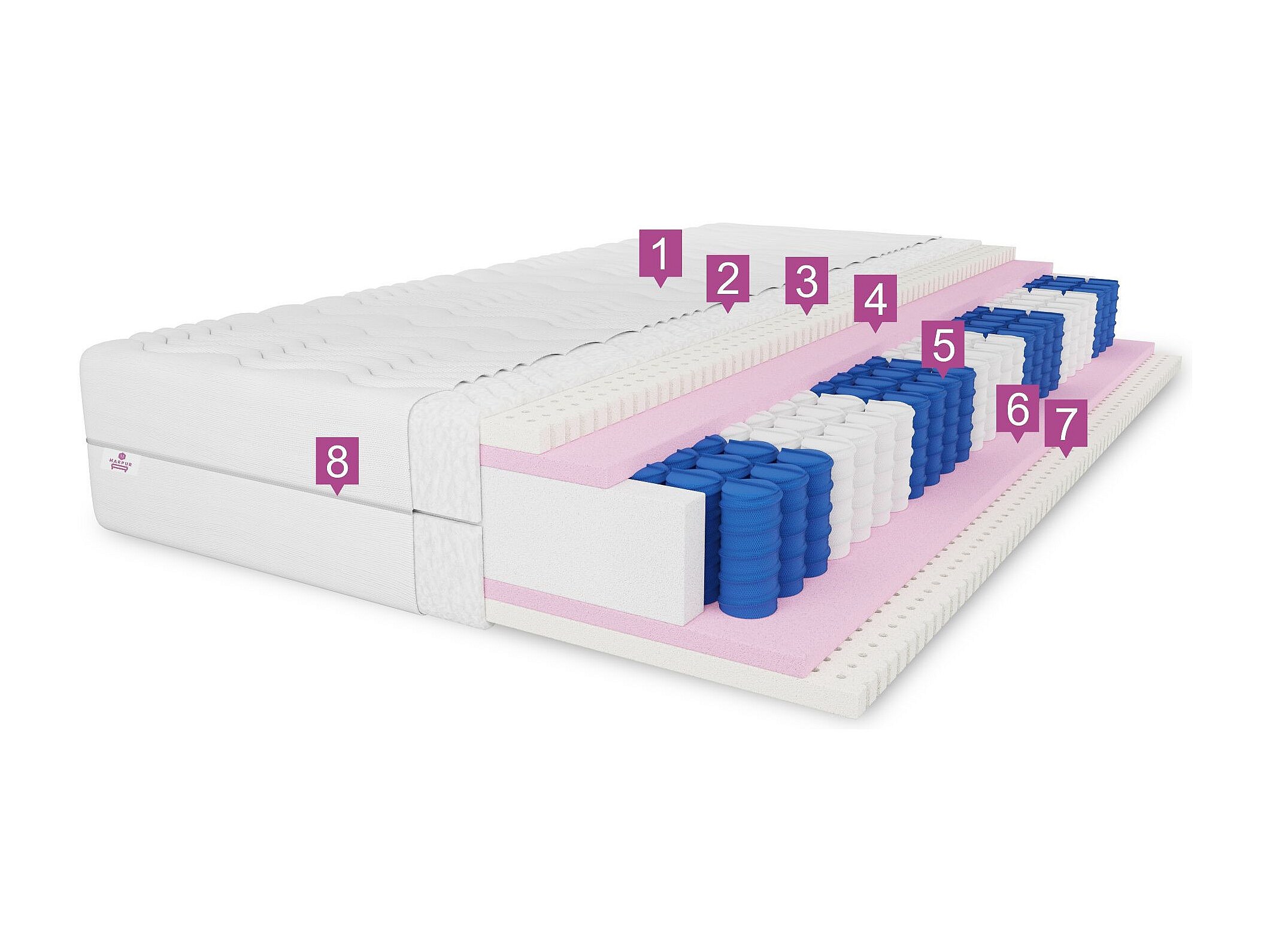 Matelas à ressorts ensachés Paris, 7 zones, latex, 180 x 200 cm, hauteur 27 cm, H3/H4, blanc