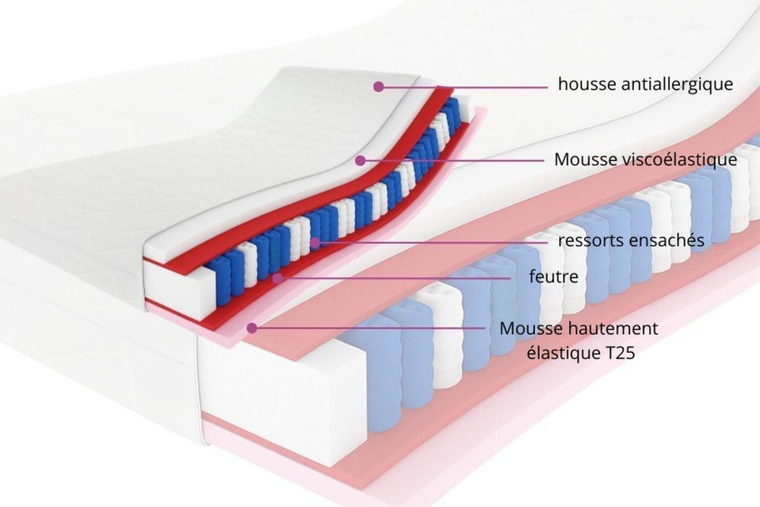 Matelas à ressorts ensachés VISCO 7 zones Cailano, 200 x 200 cm, hauteur du matelas env. 19 cm, degré de fermeté H3, couleur : aloe vera, housse incluse