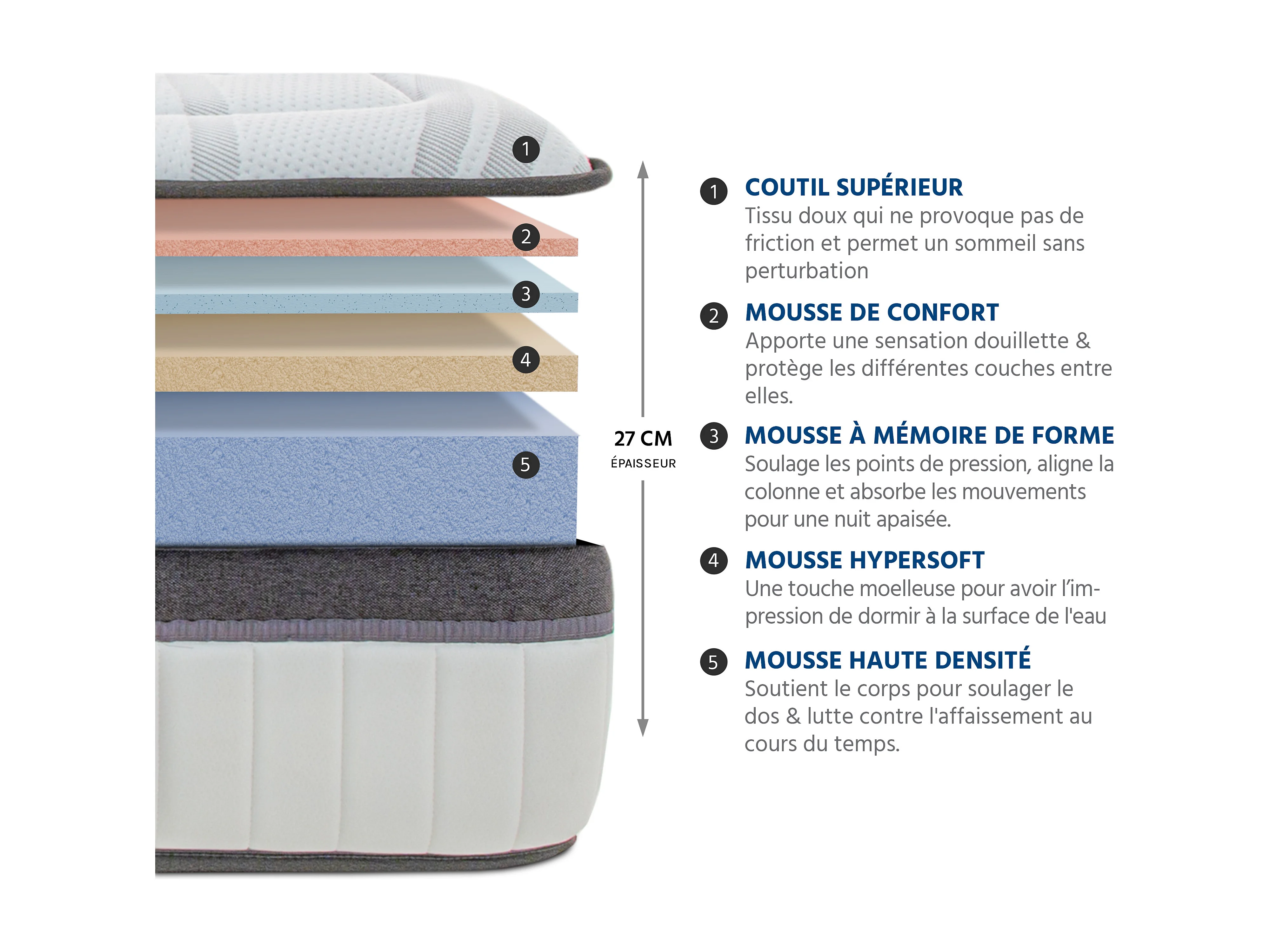 Matelas Altesse Mousse Haute densité Accueil Mémoire de forme+ sommier + accessoires - 90 x190 cm