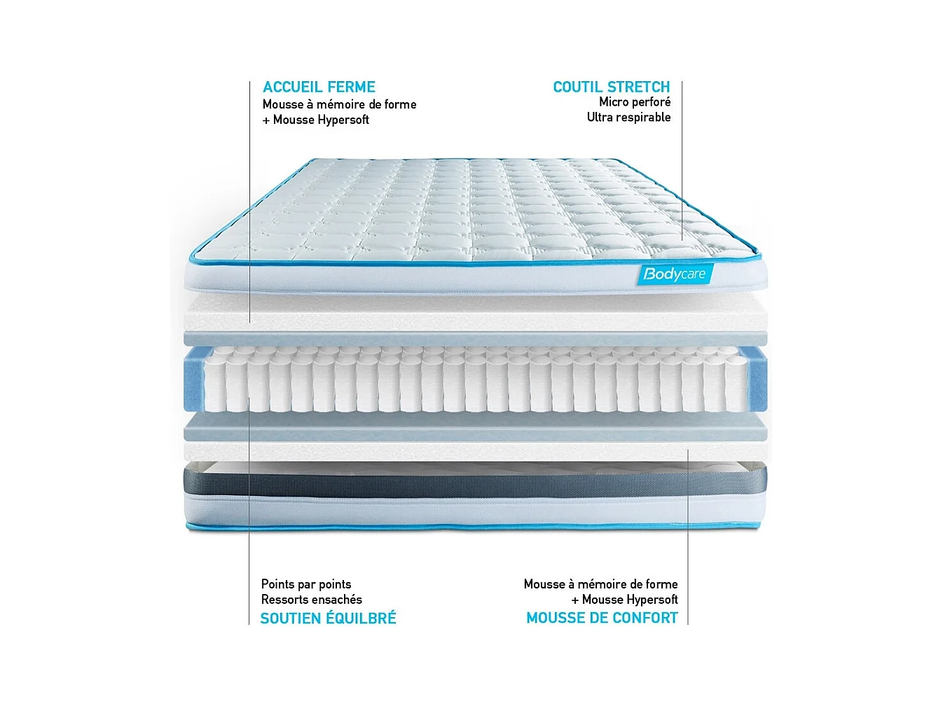 Matelas BodyFlex ressorts ensachés et mémoire de forme 140x200