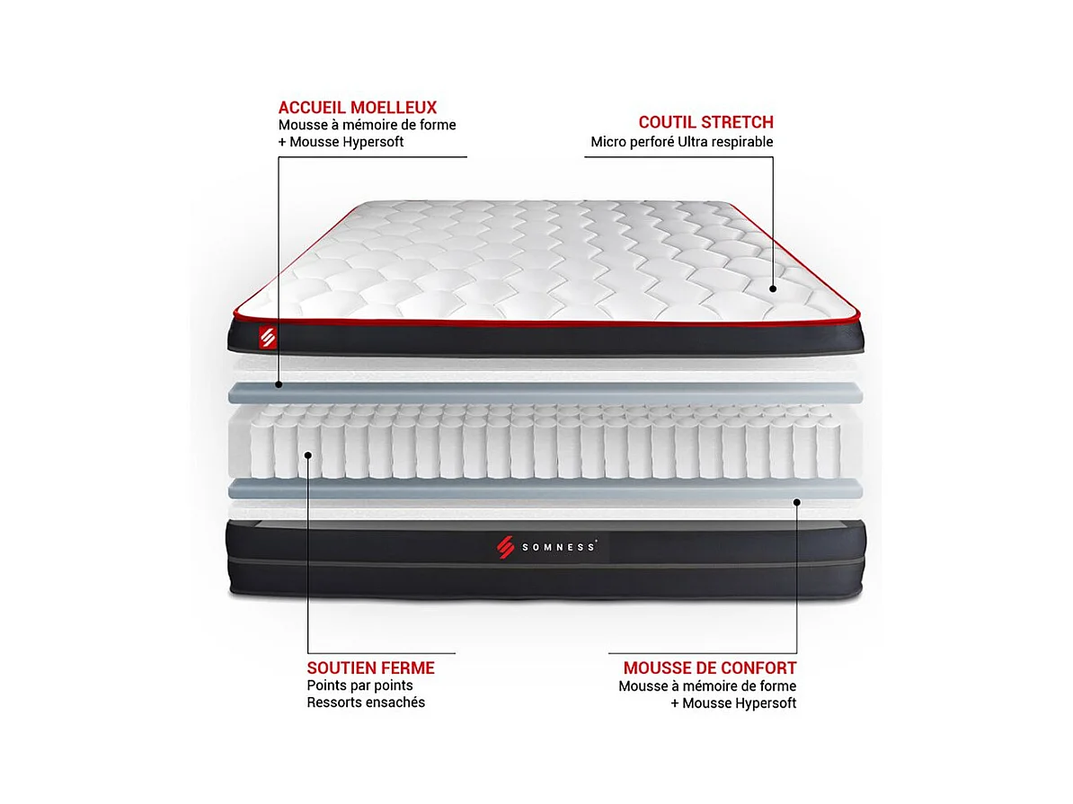 Matelas BOOST ressorts ensachés et mémoire de forme 90x200