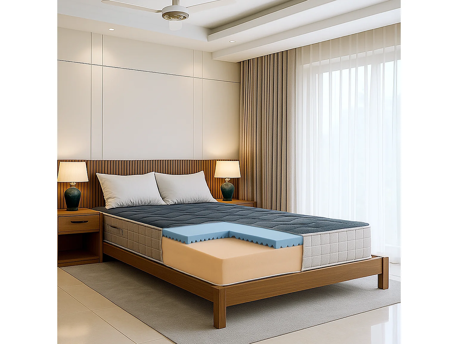 Matelas double 180x190 mousse mémoire 9 zones H22 orthopédique hypoallergénique