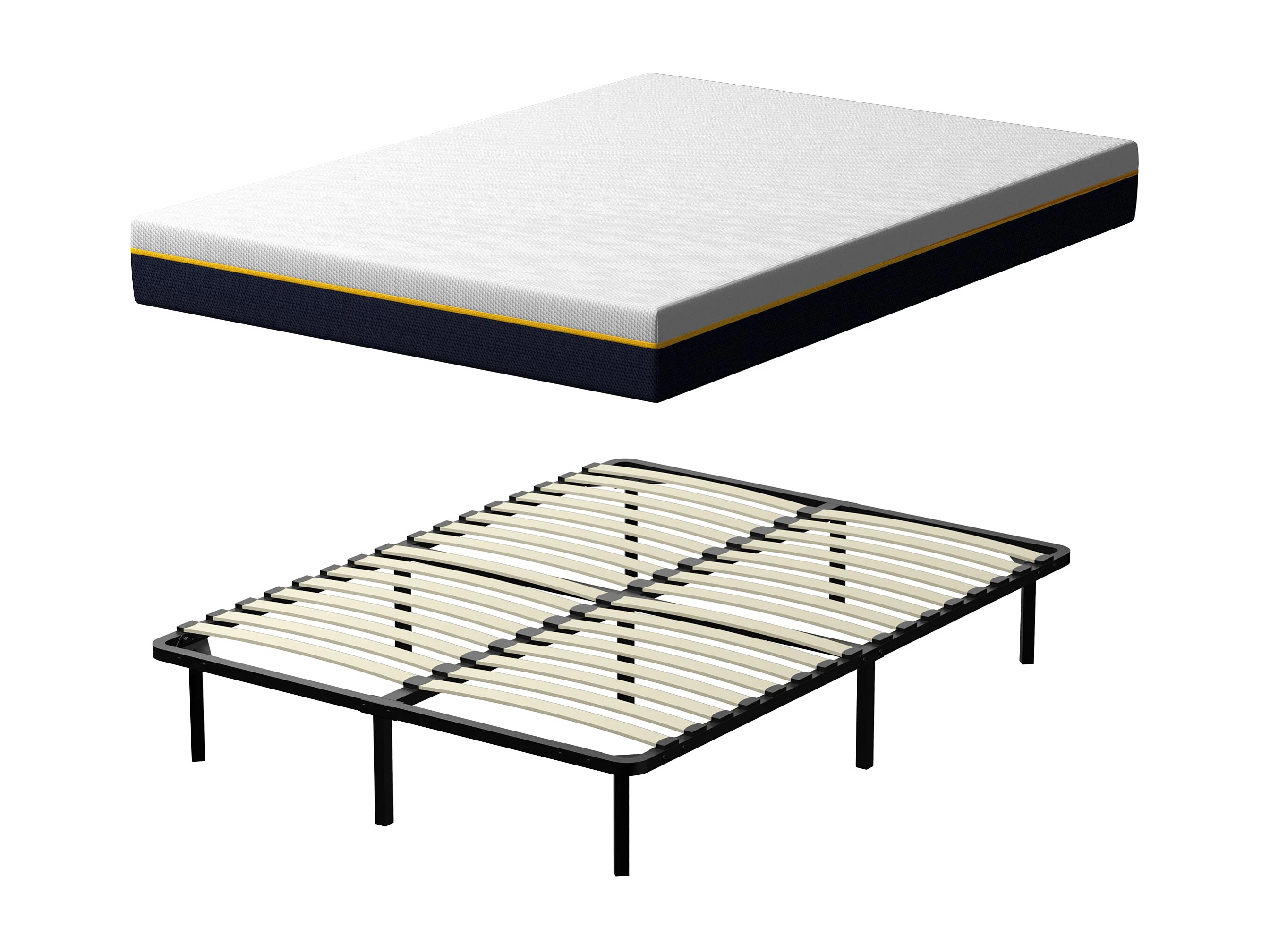 Matelas double en mousse de 17 cm + sommier à lattes de 16 rangs 140x190 cm