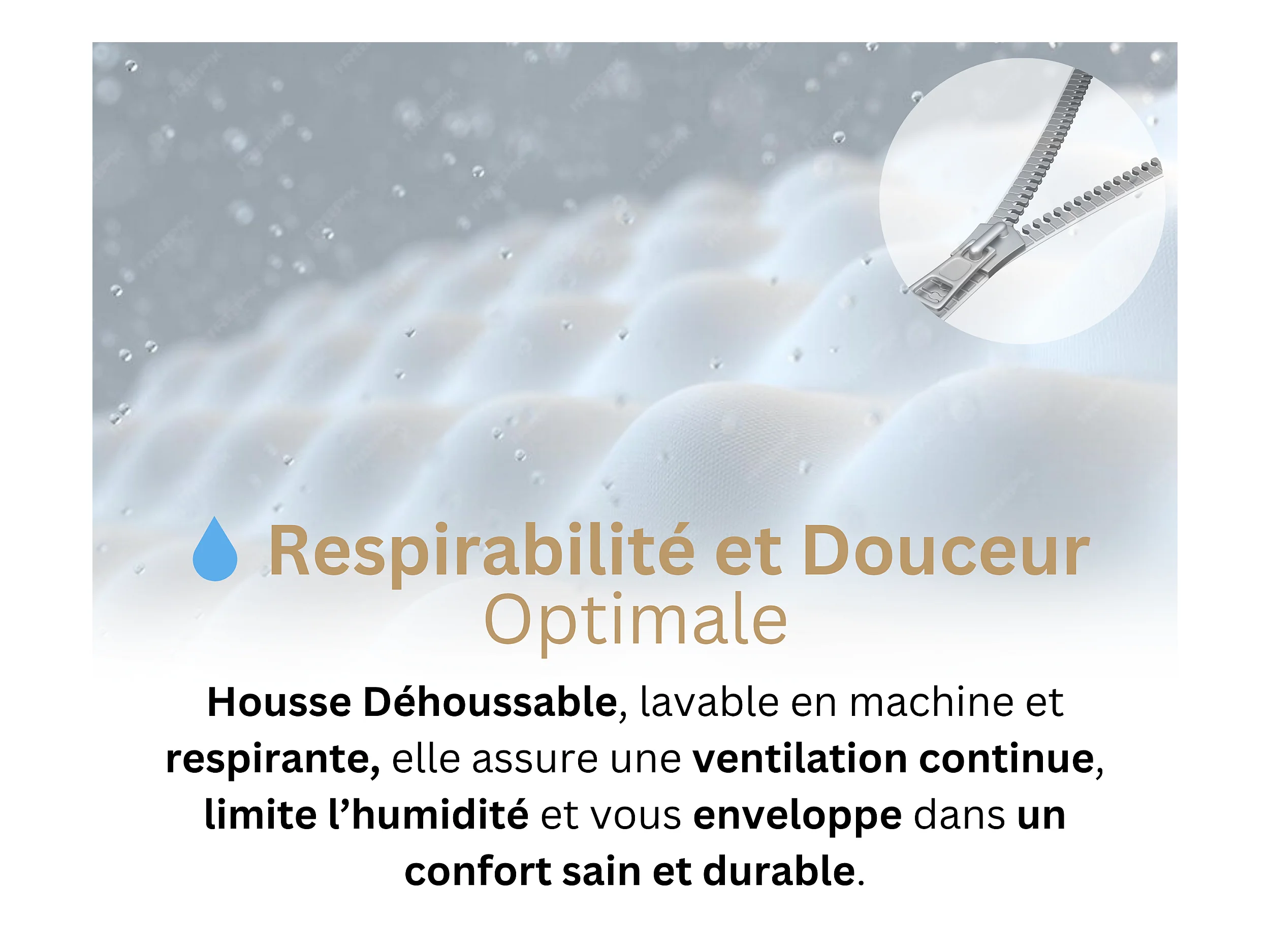 Matelas 160x200 2 Places Nuage Plus - Mémoire de Forme 60 kg/m³ Haute Qualité - Contre le Mal de Dos - Épaisseur 25 Cm - Confortable