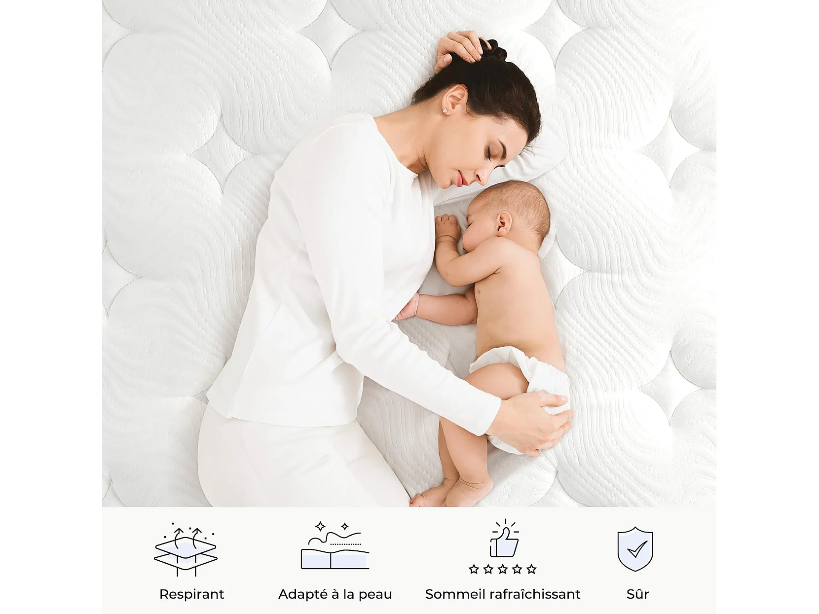 Matelas Épaisseur 160x200x26cm Blue Velvet Hybrid Ressorts Ensachés & Mousse Gel Mémoire Confort 7 Zones Multicouches Certifié Oeko-Tex