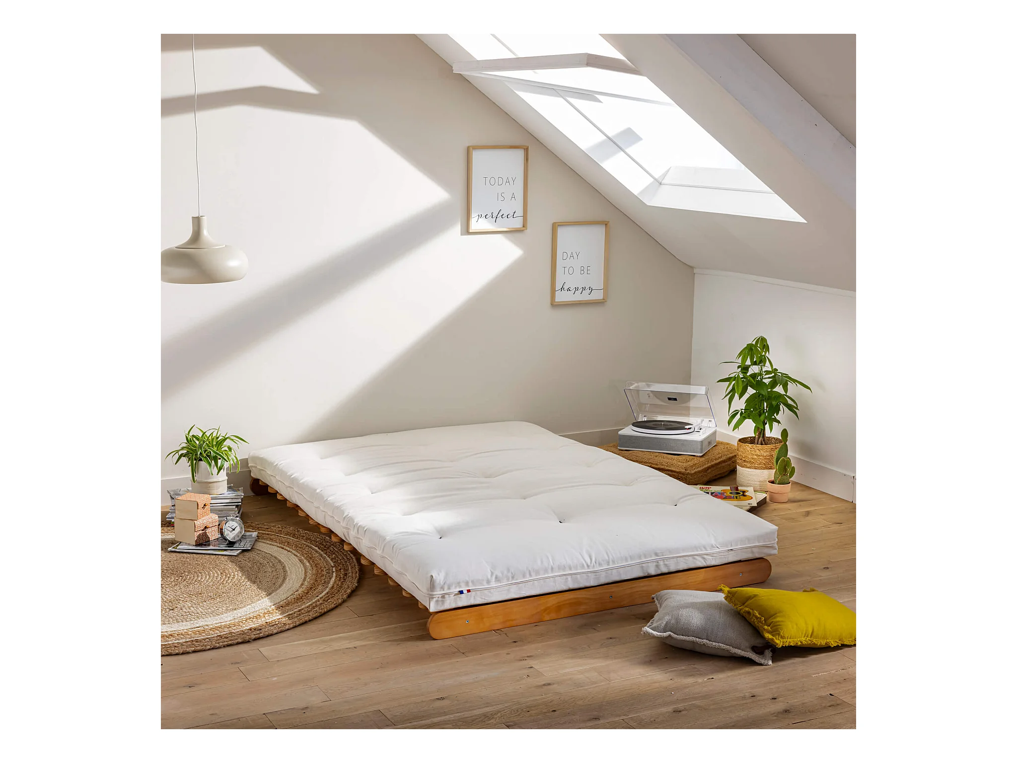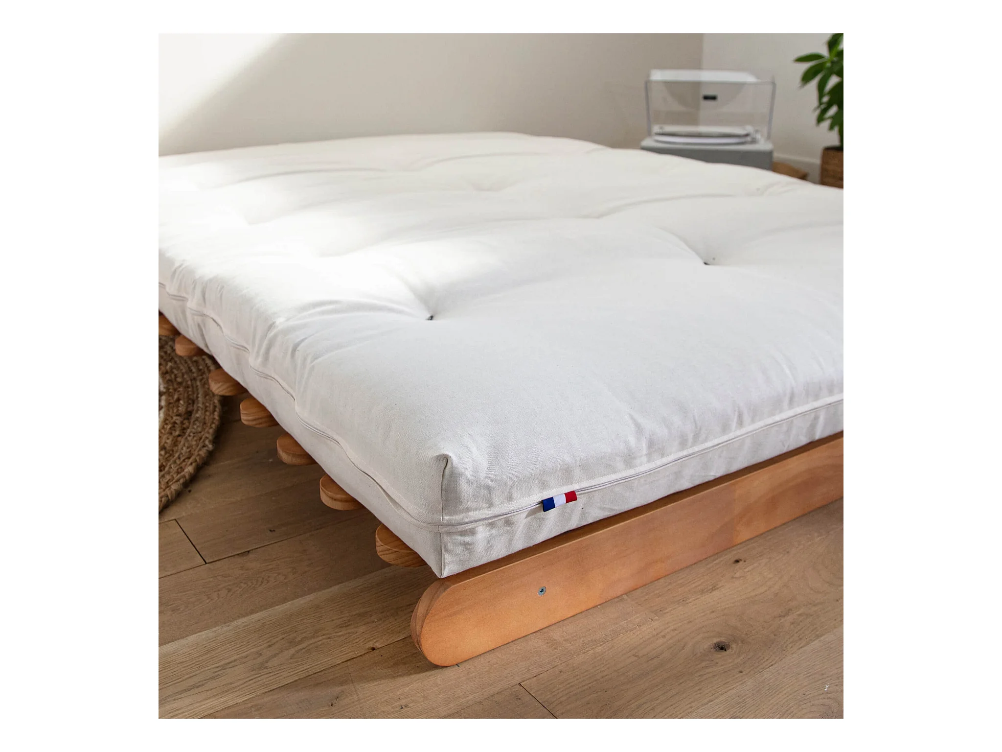 Matelas futon écru en coton 90x190