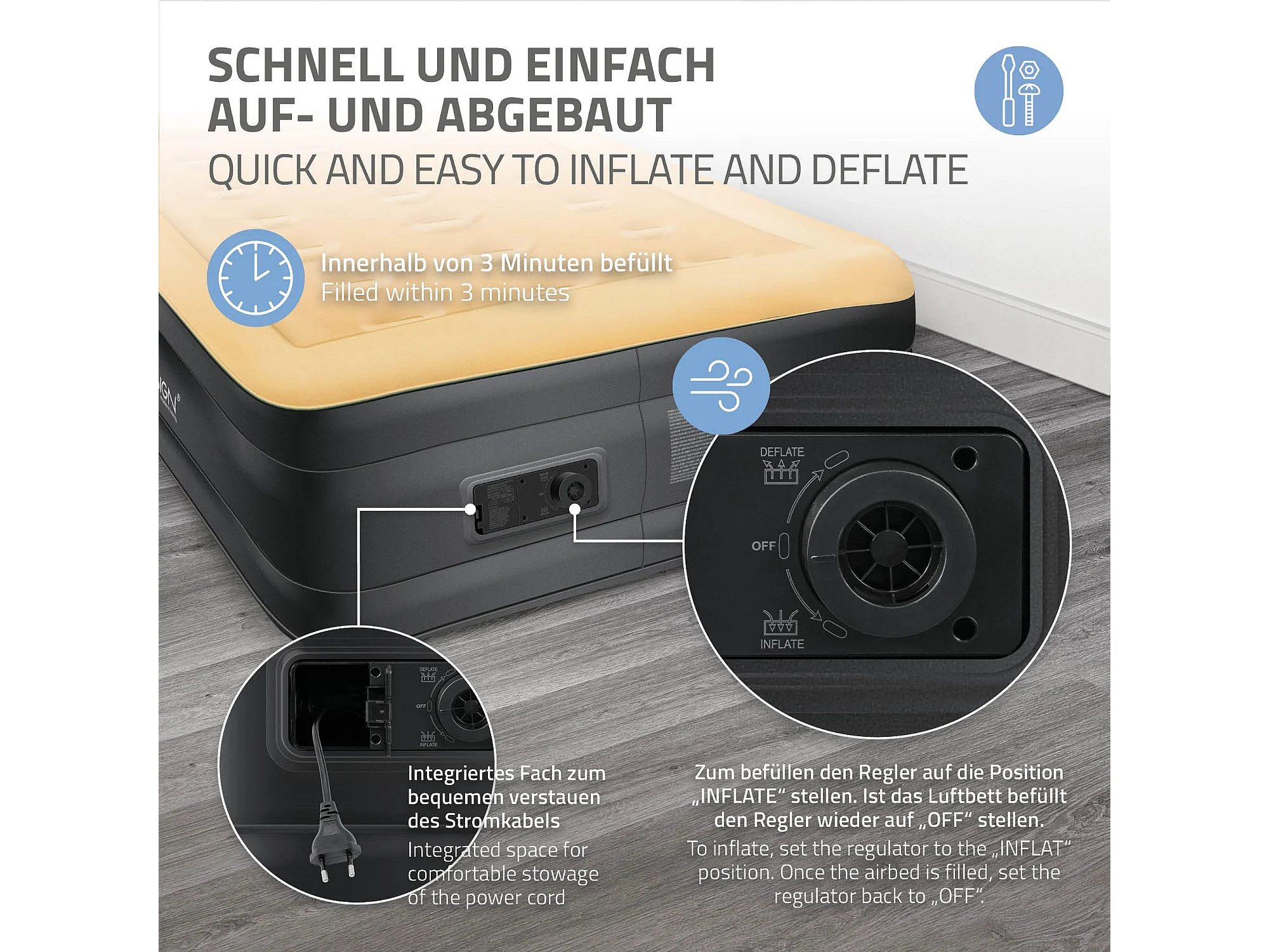 Matelas gonflable 1 personne avec pompe électrique intégrée 196x97x47 cm beige