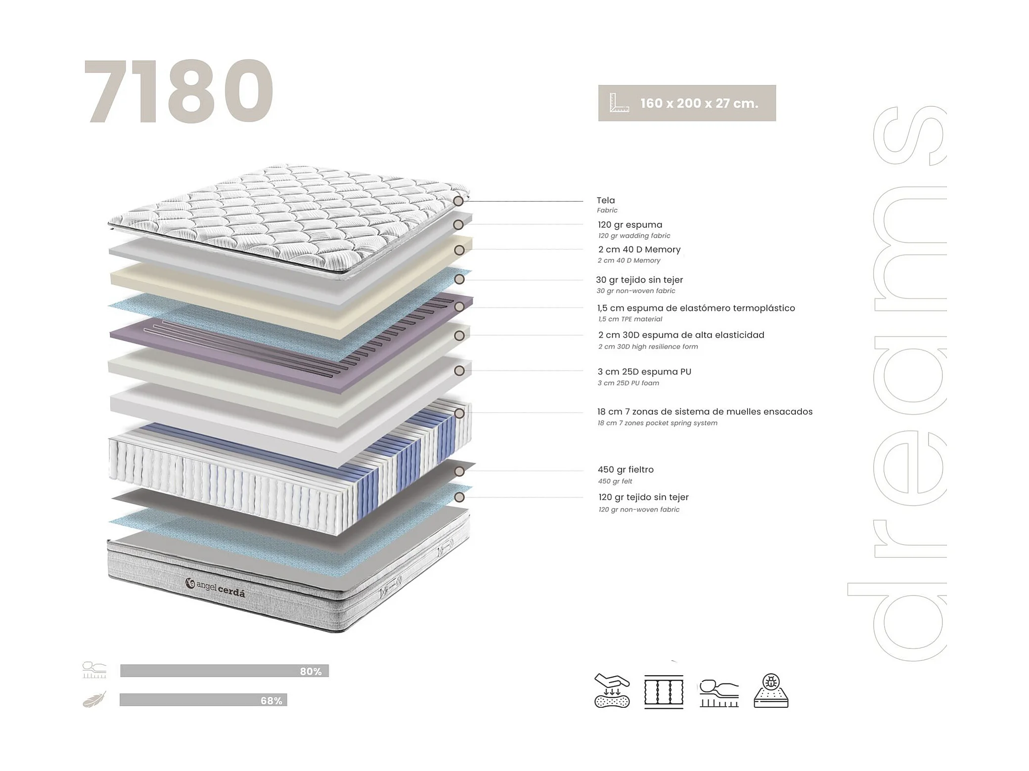 Matelas hybride à ressorts ensachés et viscoélastique 160 x 200 7180 ANGEL CERDA