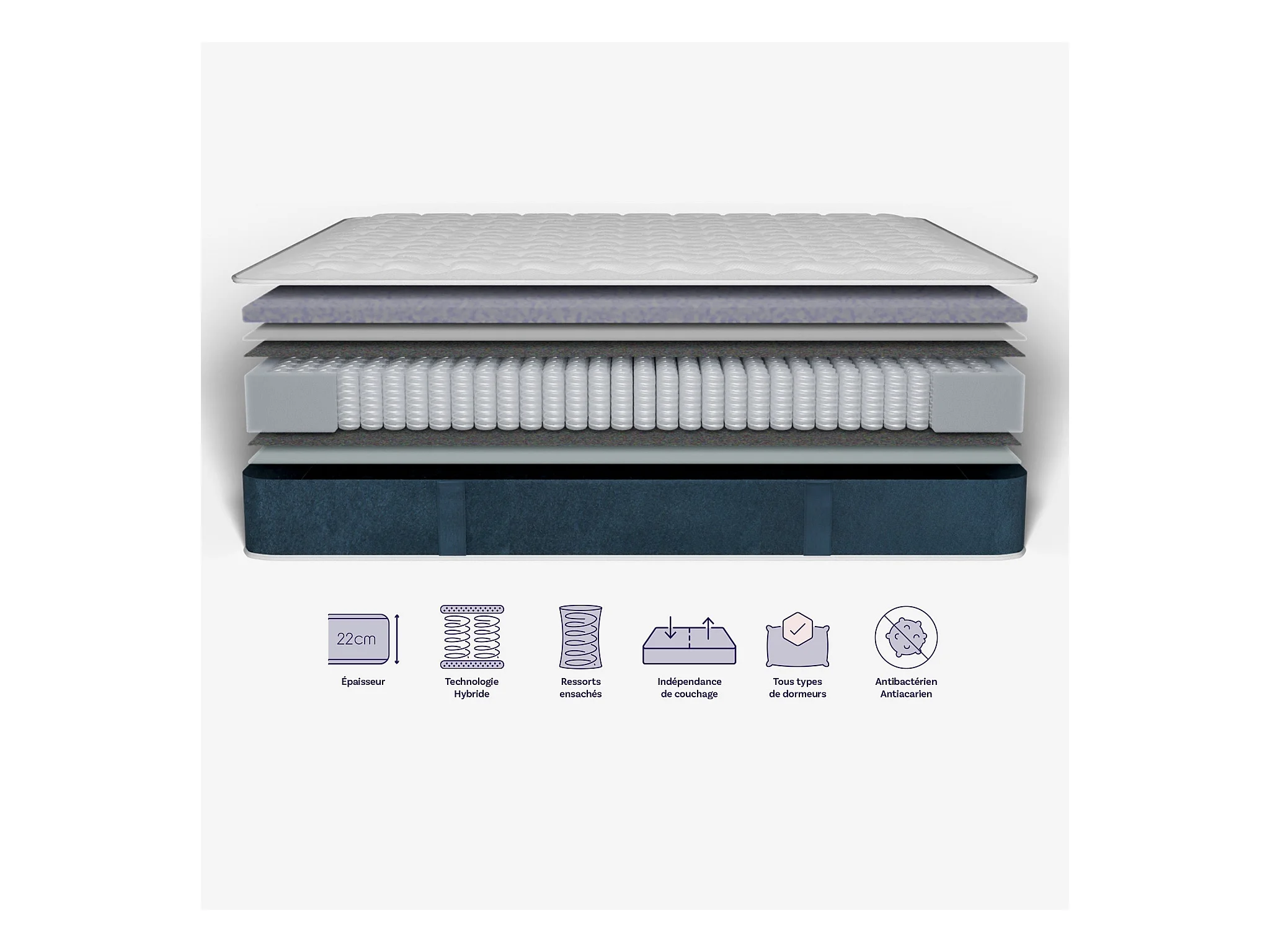 Matelas hybride et oreillers moelleux 140x200cm épais 22cm