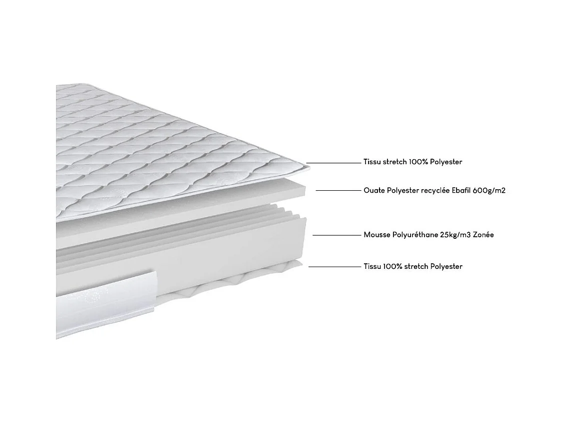 Matelas 120x190 Marly - Mousse - Hauteur 15 cm - 3 zones - Soutien ferme