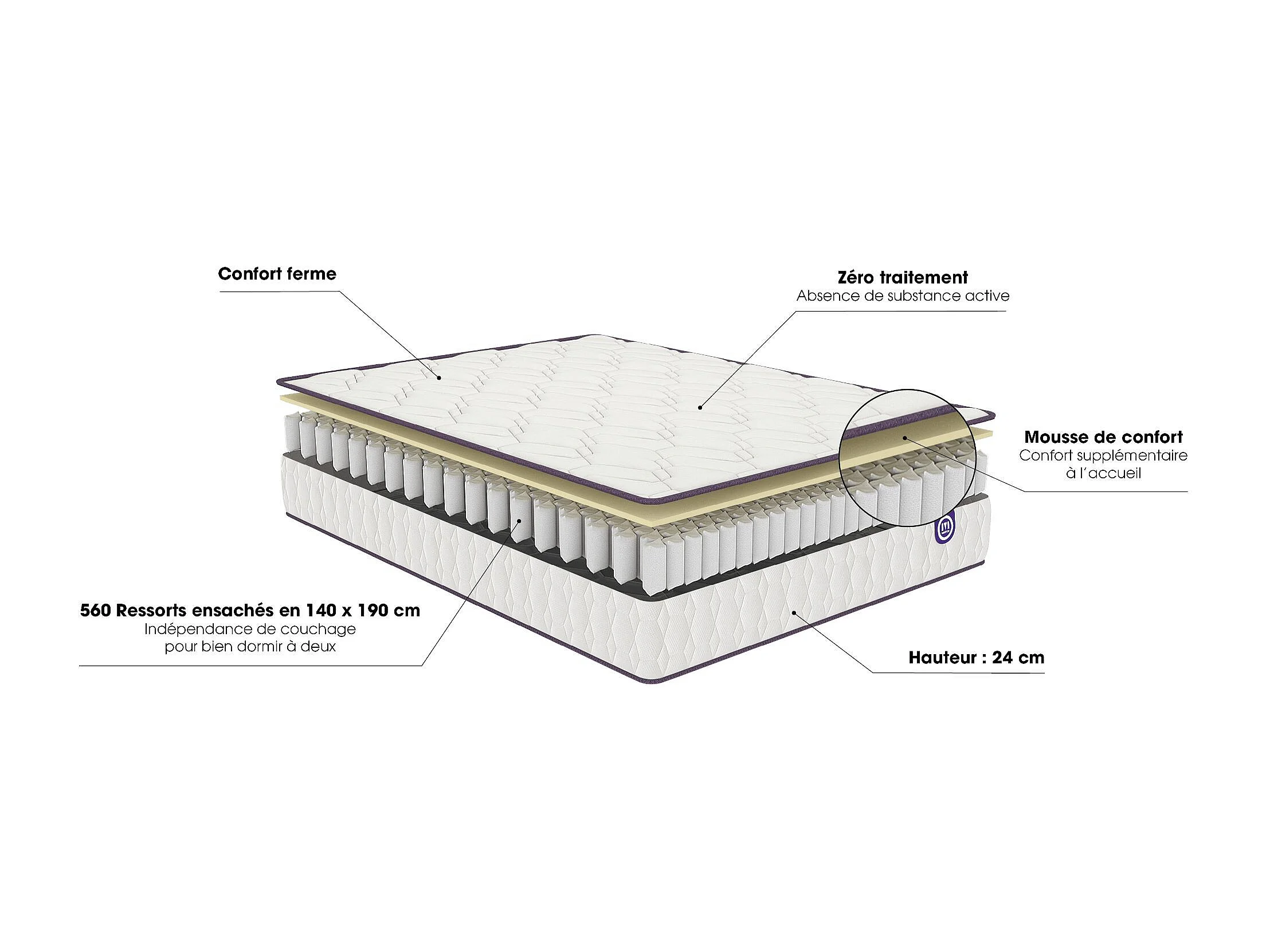 Matelas Merinos ressorts ensachés Morning Routine 90x200