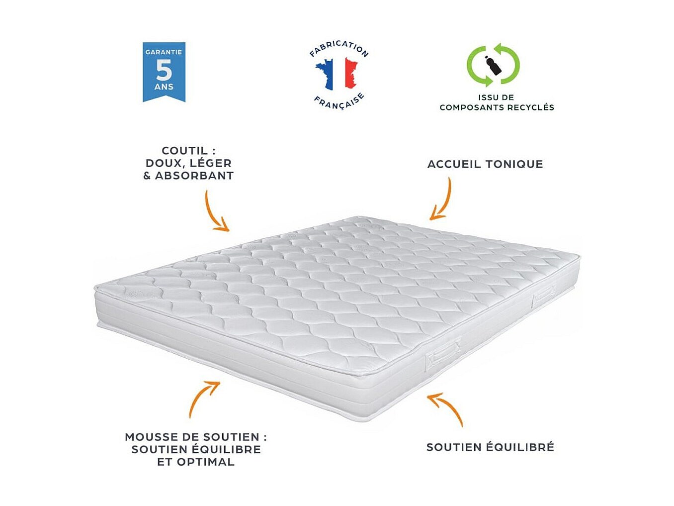 Matelas Montana + sommier tapissier Omega - 2x80x200 - Mousse - Hauteur 18 cm