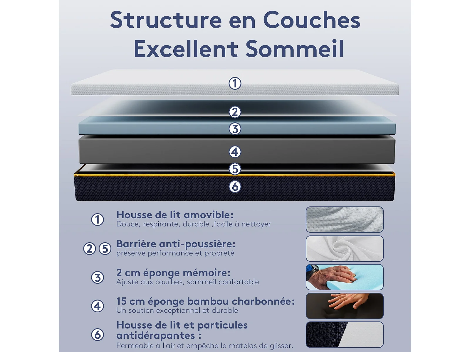 Matelas Mousse à Mémoire 140x200 cm + Sommier Tapissier, Épaisseur 17 cm