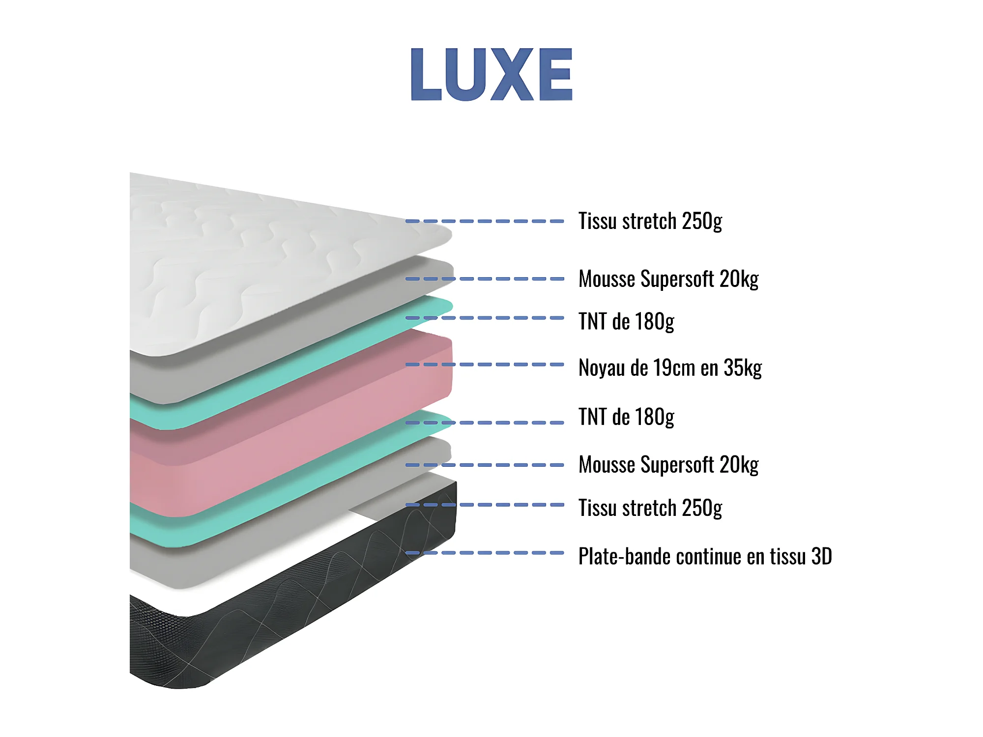 Matelas mousse Luxe - 140x190cm - mousse 35kg/m³ - 24 cm