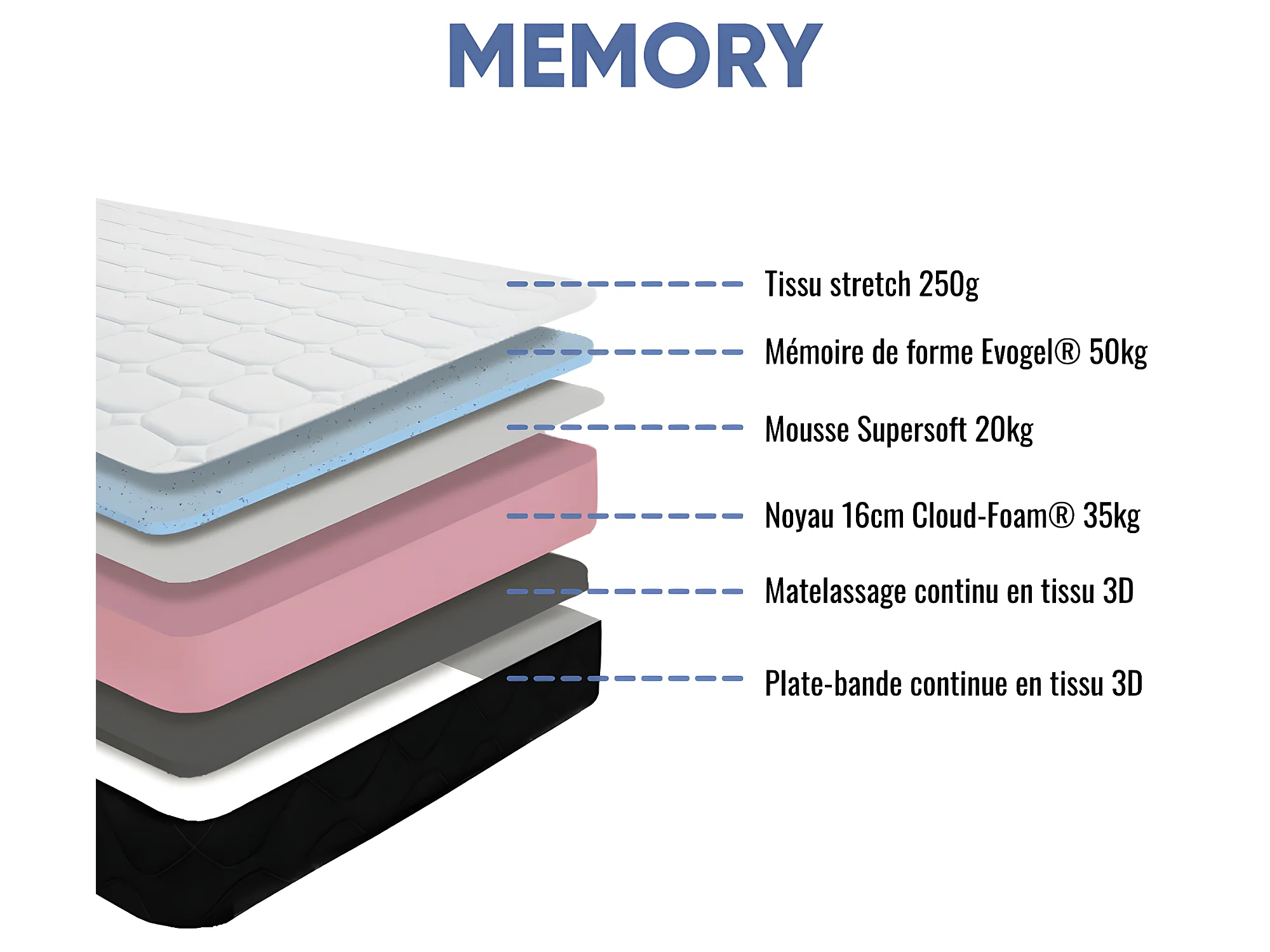 Matelas mousse Memory - 90x190cm - accueil mémoire de forme 50kg/m3 - 19 cm