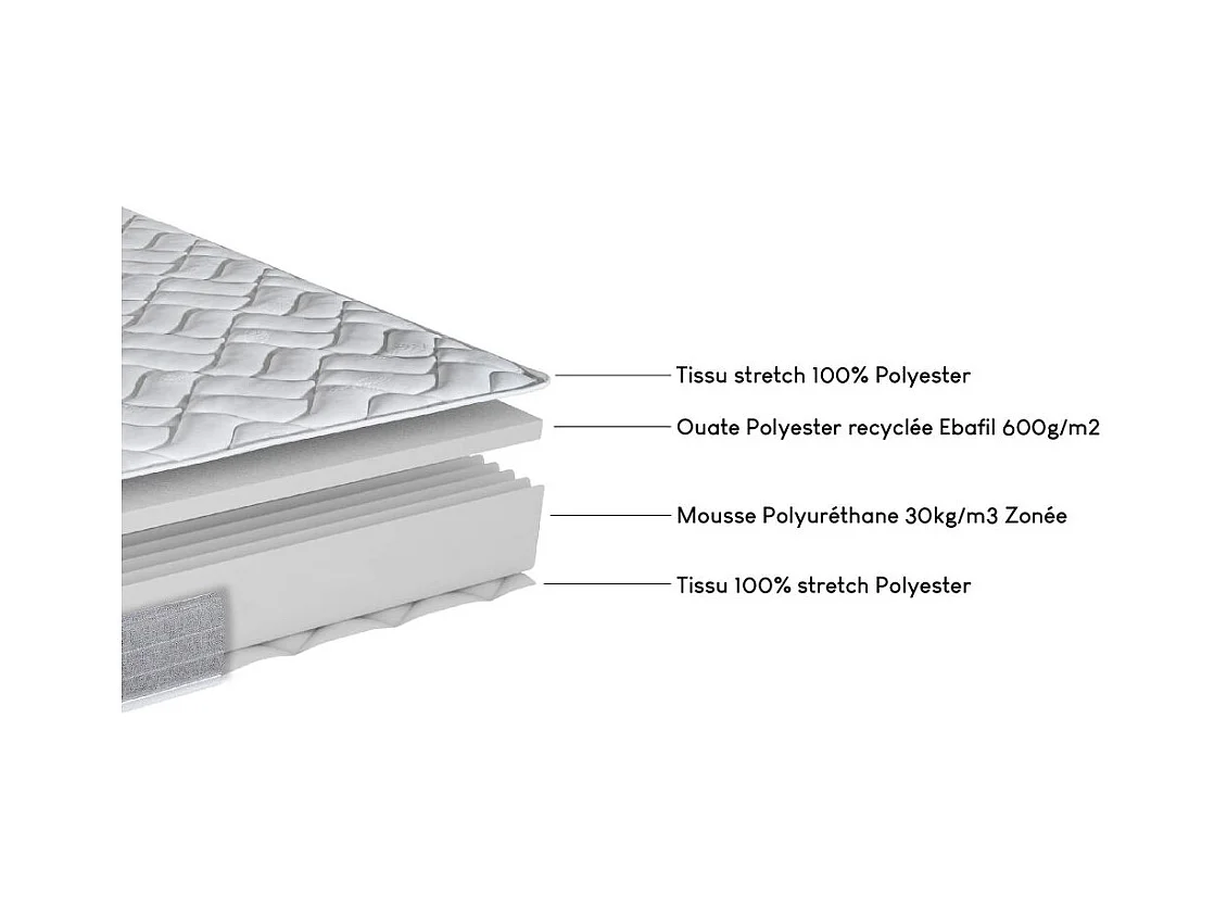 Matelas mousse + Sommier Gris clair 160x200 Maryland - Hauteur 20 cm - Soutien ferme