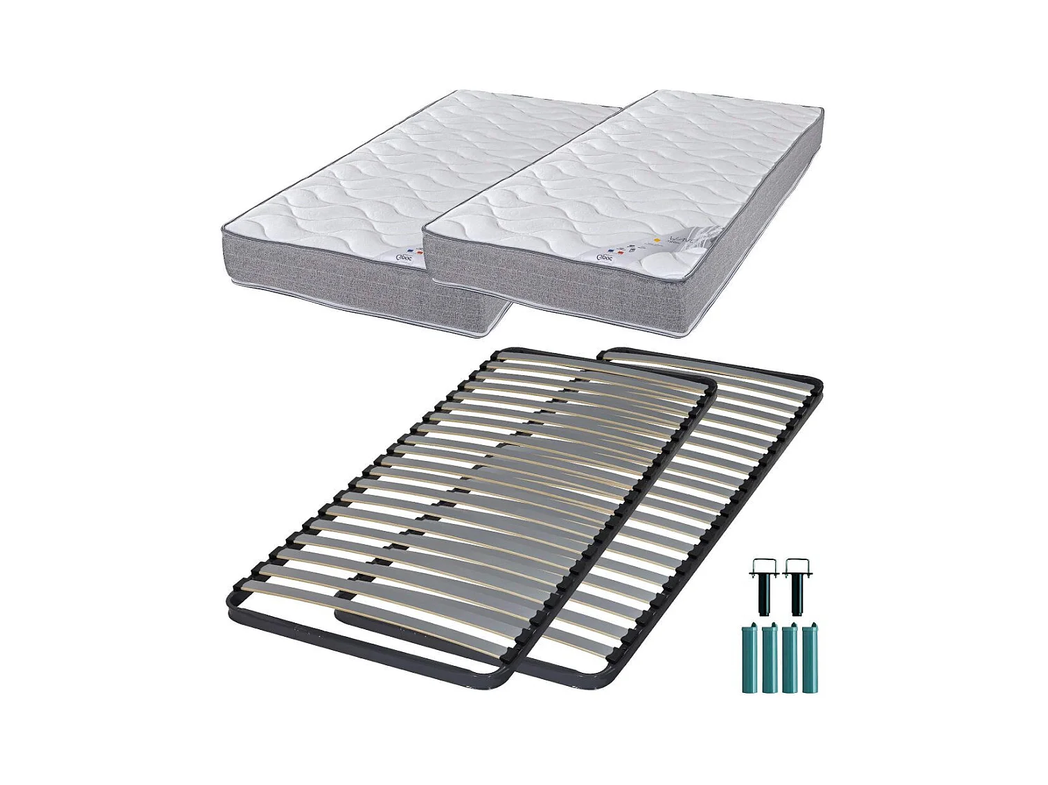 Matelas mousse + Sommier métal C220 2x90x200 Wave - Hauteur 19 cm - Soutien ferme