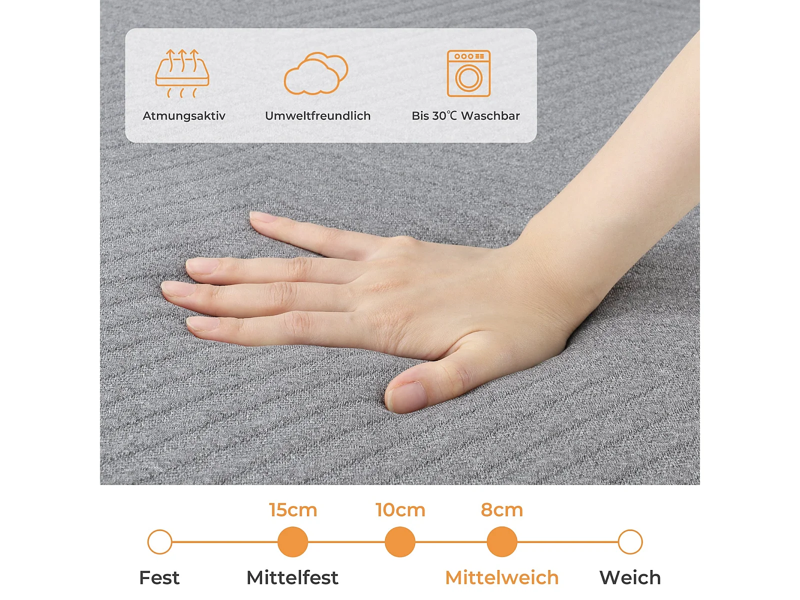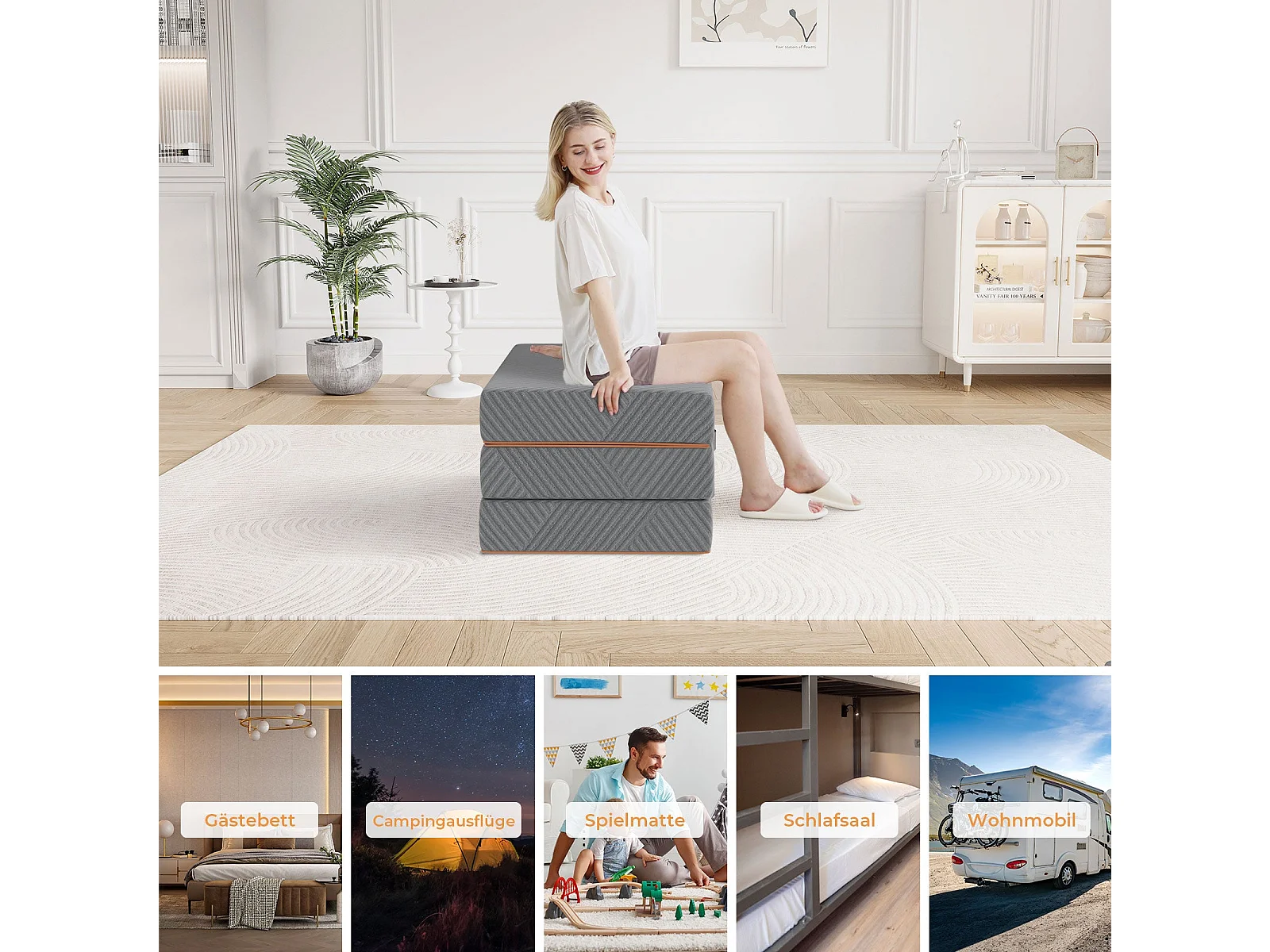 Matelas Pliable 8cm, Mousse Mémoire Gel, Housse Oeko-TEX, avec Sac de Transport, Lit d'Appoint 1 Personne, Parfait pour Invités