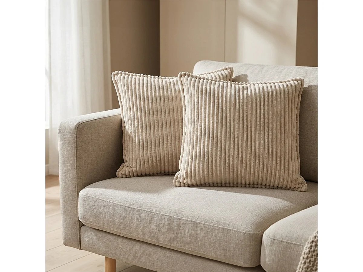 MATELAS POUR TOUS | Lot de 2 coussins velours côtelé MALO 40x40cm | Beige