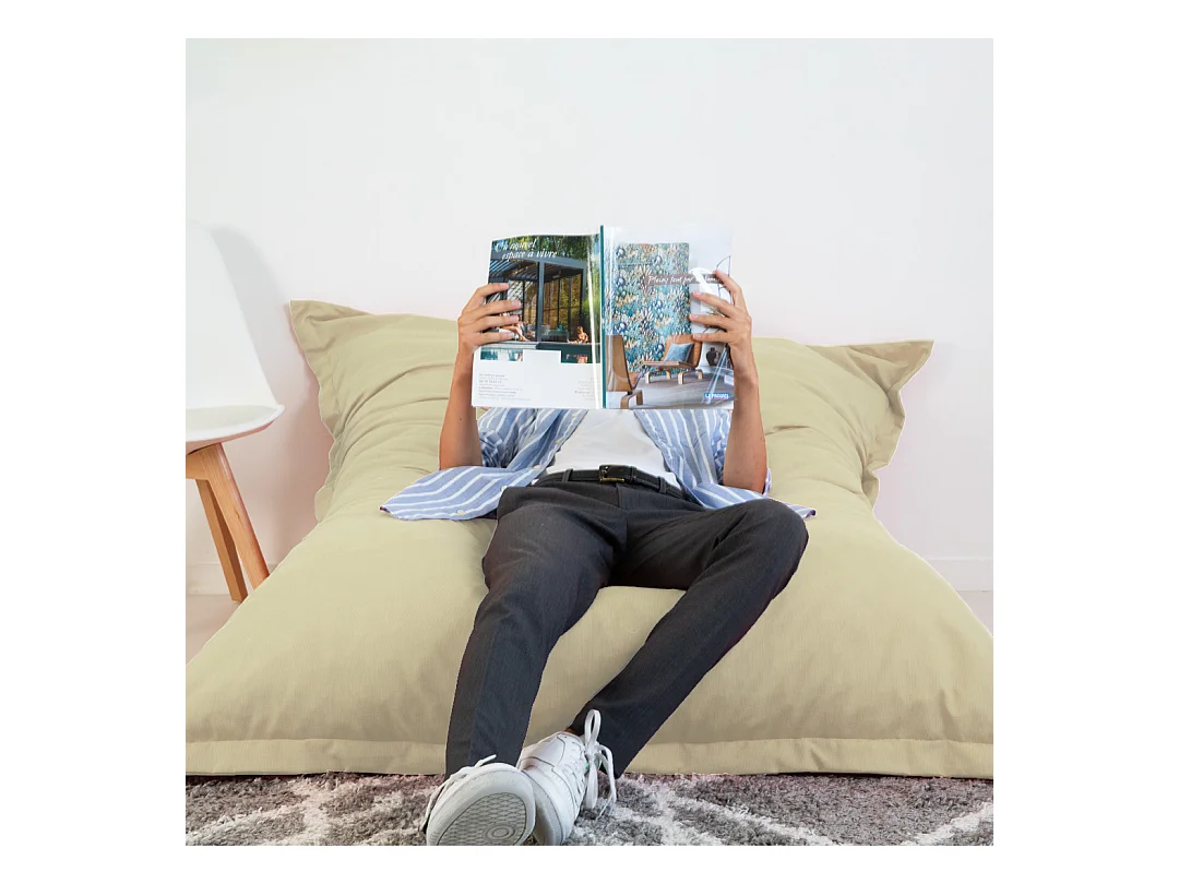 Pouf Géant XXL Intérieur et Extérieur, Déhoussable, Salon, Jardin, Deco Arts Beige